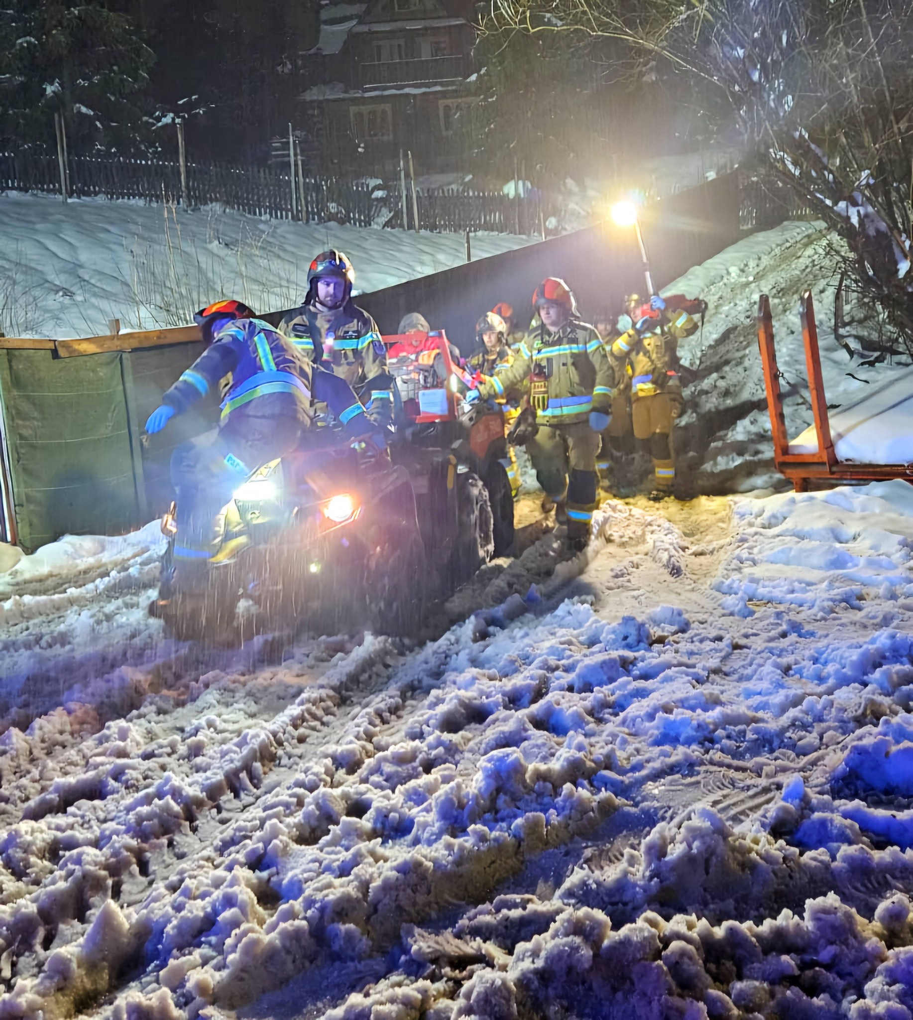 Trudna akcja ratunkowa w Kościelisku. Śnieg utrudnił dojazd służbom