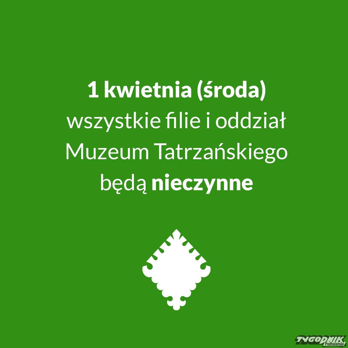 Muzeum Tatrzańskie zamknięte 1 kwietnia. To nie żart