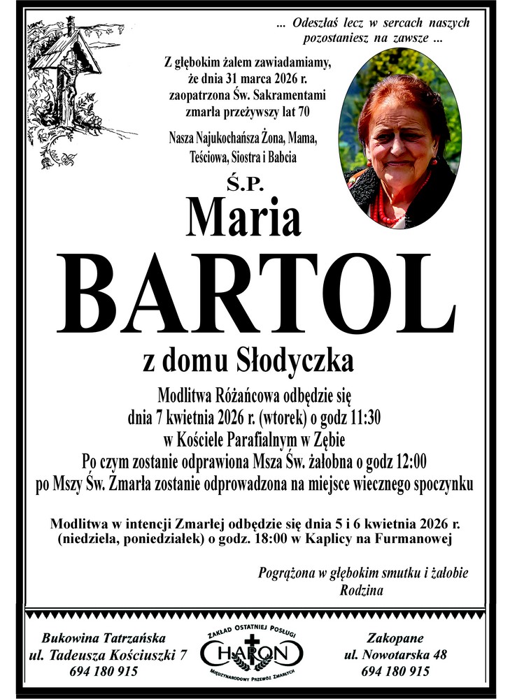 2026-04-01 14:30 Orawski koszyczek wielkanocny. Konkurs w Zubrzycy Górnej 2026-04-01 14:00 Turystka wjechała autem na Krupówki. Tłumaczyła, że chciała zrobić zakupy 1 2026-04-01 13:51 Turniej Bezpieczeństwa w Ruchu Drogowym w Zakopanem 2026-04-01 13:25 Zima ponownie dała o sobie znać na Babiej Górze 2026-04-01 13:14 Domki zamiast poidełek dla koni. Jest akt oskarżenia za budowę na Bachledzkim Wierchu 3 2026-04-01 13:00 To już chyba ostatnie ostrzeżenie przed opadami śniegu 2026-04-01 12:28 Kursy do Morskiego Oka nadal odwołane. Trudne warunki w Tatrach 2026-04-01 12:00 Sensacyjne znalezisko czy primaaprilisowy żart? Oceńcie sami 2026-04-01 11:24 Rozpoczyna się trzecia edycji konkursu Młode Zakopane 2026-04-01 11:00 O krok od tragedii w tunelu na zakopiance (WIDEO) 4 2026-04-01 10:32 Masaż tajski - jak działa na ciało i samopoczucie? 2026-04-01 10:28 Nietypowa akcja poszukiwawcza w Beskidach. Tego nikt się nie spodziewał 1 2026-04-01 10:00 W Dolinie Pięcu Stawów 176 cm śniegu, w Zakopanem 42. Tatry zamknięte (WIDEO) 2026-04-01 09:00 Samorządy jednoczą się dla chorego chłopca. Akcja dla Maksa nabiera ogólnopolskiego zasięgu 2026-04-01 08:00 Zakopane chce przejść do historii. W tle nazwisko Donalda Trumpa 25 2026-03-31 22:09 Adam Małysz skacze wyżej od Prevca (WIDEO) 4 2026-03-31 21:39 Muzeum Tatrzańskie zamknięte 1 kwietnia. To nie żart 2 2026-03-31 21:37 Wiosna Jazzowa z ogólnopolskim wsparciem. Festiwal rośnie w siłę 2026-03-31 21:03 Nowy żłobek w Poroninie od września 2026. Ruszyła wstępna rekrutacja 2026-03-31 20:10 Trudna akcja ratunkowa w Kościelisku. Śnieg utrudnił dojazd służbom 3 2026-03-31 20:02 Wyniki 66. Konkursu Palm Wielkanocnych w Rabce-Zdroju 2026-03-31 19:30 Bardzo trudne warunki na Babiej Górze 2026-03-31 18:45 Wjechał na podwórko i ukradł sprężarkę 4 2026-03-31 18:00 Rusza zbiórka odpadów wielkogabarytowych w gminie Biały Dunajec. Jest harmonogram 2026-03-31 17:41 Lawinowa czwórka na tatrzańskich szlakach. Skrajnie niebezpiecznie 3 2026-03-31 17:25 Śnieżny zajączek zamiast bałwanka, czyli Wielkanoc po góralsku 2026-03-31 17:00 Blok komunalny gotowy 2026-03-31 16:31 Internet mobilny bez fizycznej karty - jak eSIM zmienia sposób korzystania ze smartfona? 2026-03-31 16:25 Najnowszy raport z Kuźnic. Tatry zamknięte (WIDEO) 2 2026-03-31 16:00 Bachleda Hotel Kasprowy w prestiżowym gronie 1 2026-03-31 15:30 Kolejne zatrzymanie w sprawie handlu ludźmi. 44-latek trafił do aresztu 1 2026-03-31 15:00 Mieszkańcy ul. Sienkiewicza: w zgłoszeniu była mowa o 10 miejscach postojowych 3 2026-03-31 14:00 Przejście dla pieszych i ścieżka rowerowa już na etapie projektowym 5 2026-03-31 13:28 Zlekceważył decyzję o wyjeździe. 25-latek przymusowo wydalony z Polski 1 2026-03-31 13:01 Tatry zamknięte dla turystów! 4 2026-03-31 13:00 Kolejni poszukiwani w rękach zakopiańskich policjantów 1 2026-03-31 11:41 Sprawdzamy, o ile zmniejszyły się w Zakopanem ceny paliw 10 2026-03-31 11:39 Odwołane kursy na Polanę Palenicę w dniu 31 marca 2026-03-31 11:22 Macie siłę łopatować? Zakopane pod śniegiem. Wiosna z łopatą i odśnieżarką w tle (WIDEO) 3 2026-03-31 10:00 Kolejny wiosenny poranek na Krupówkach (WIDEO) 2 2026-03-31 10:00 Wyrok w sprawie pobicia 13-letniego chłopca w Zakopanem 4 2026-03-31 09:09 Zamknięta droga do Morskiego Oka. TPN apeluje: dziś lepiej zrezygnować z wyjść w góry 2 2026-03-31 08:59 Paraliż na drogach, auto w rowie. Mieszkańcy alarmują, że pługi nie dojechały 5 2026-03-31 08:25 Pijani kierowcy zatrzymani w Poroninie. Policja apeluje o rozsądek 6 2026-03-31 08:00 Zimowe Podhale. Śnieg, mróz i trudne warunki na drogach 1 2026-03-30 21:12 Szczawnickie bazicki 4 2026-03-30 20:18 Kolorowa Wielka Krokiew. Ostatnie przygotowania przed zawodami 1 2026-03-30 20:00 Świąteczny kiermasz w Szczawnicy 1 2026-03-30 19:00 Dom doceniony 6 2026-03-30 18:01 To już na początku kwietnia. Na Dunajcu pojawią się pierwsze tratwy 1