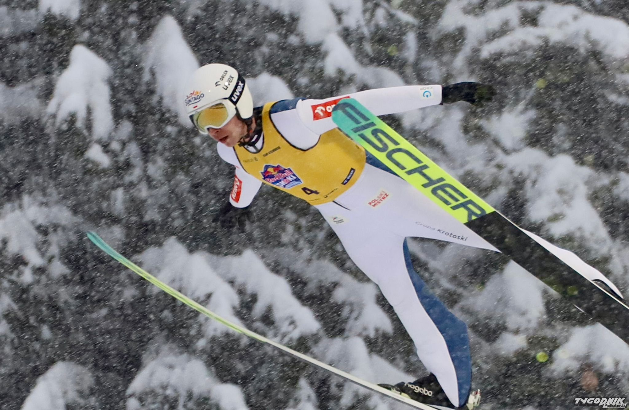 Warunki nie są zbyt sprzyjające, pada mokry śnieg, ale na Wielkiej Krokwi oglądamy dziś wielu znanych skoczków.