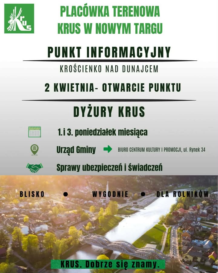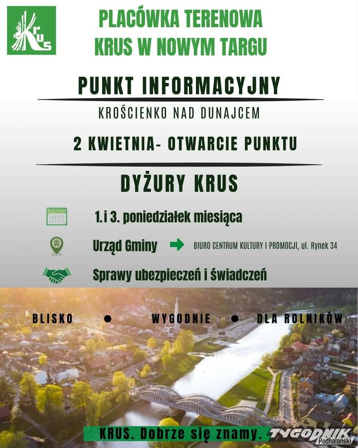 Punkt informacyjny placówki terenowej KRUS będzie czynny dwa razy w miesiącu.