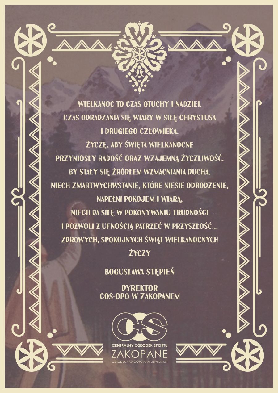 Centralny Ośrodek Sportu w Zakopanem z życzeniami