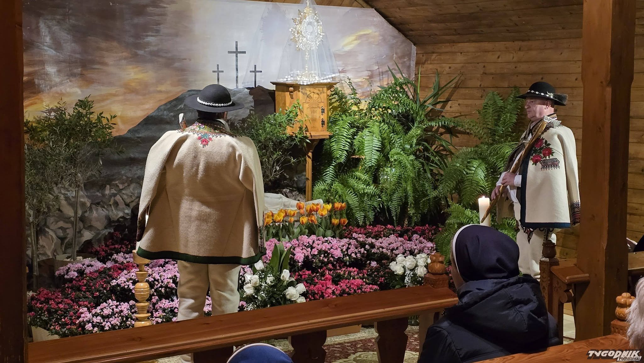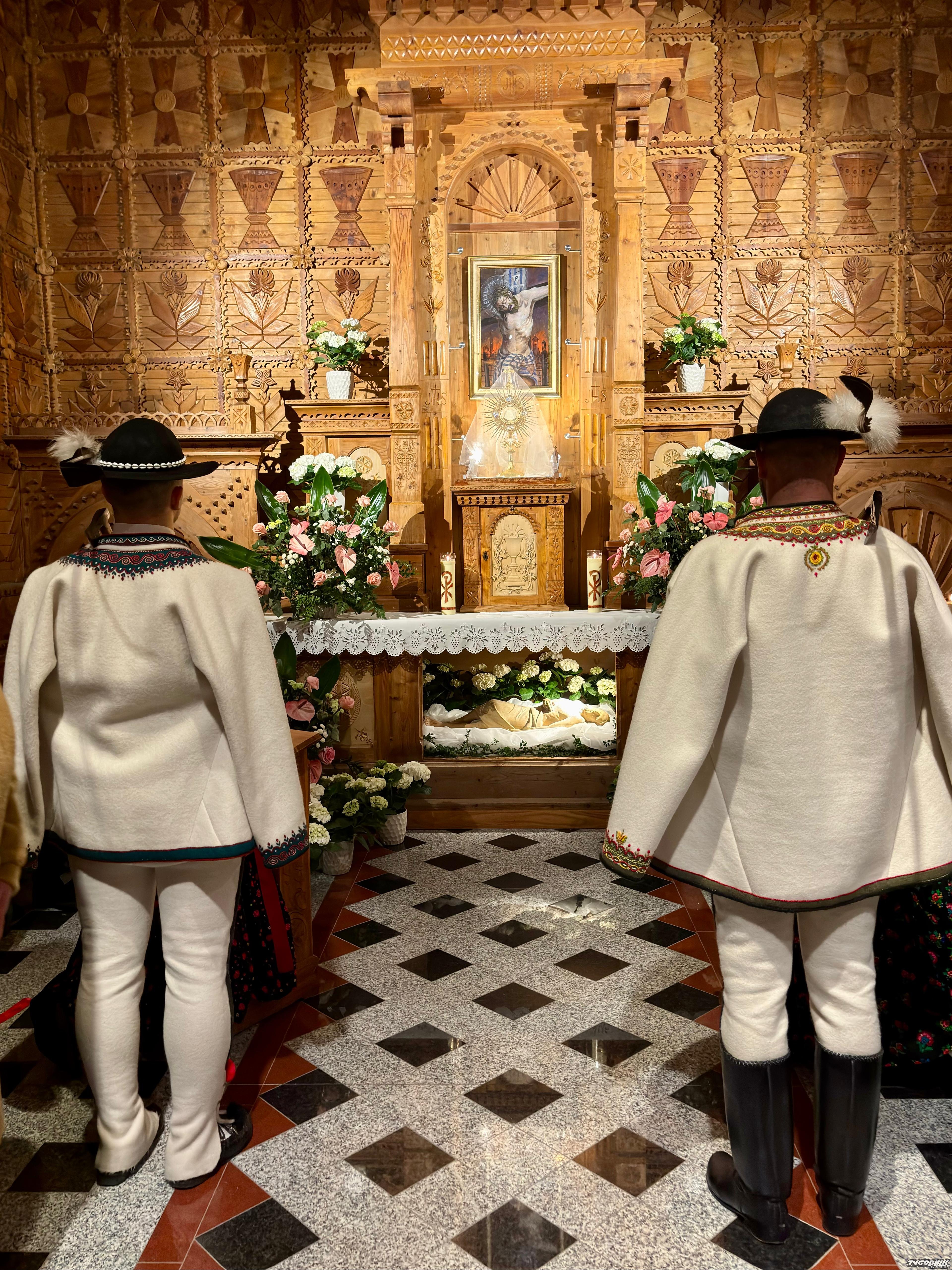 Obyczaj ukazywania Grobów Chrystusa ma w naszym kraju kilka wieków tradycji. W wielu podhalańskich kościołach przy grobach czuwają górale w regionalnych strojach. Na wideo poniżej możecie zobaczyć góralską zmianę warty w Kościele św. Kazimierza Królewicza w Kościelisku i Sanktuarium św. Antoniego w Zakopanem.