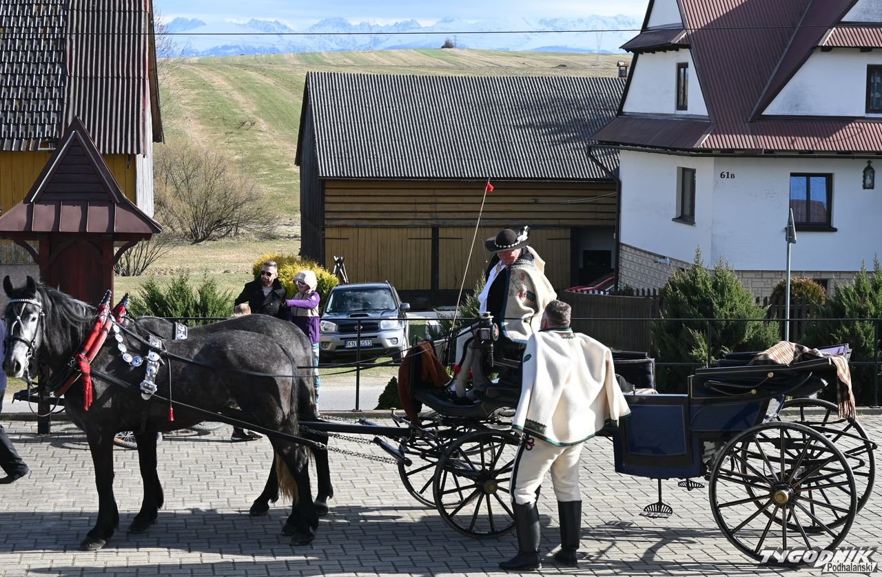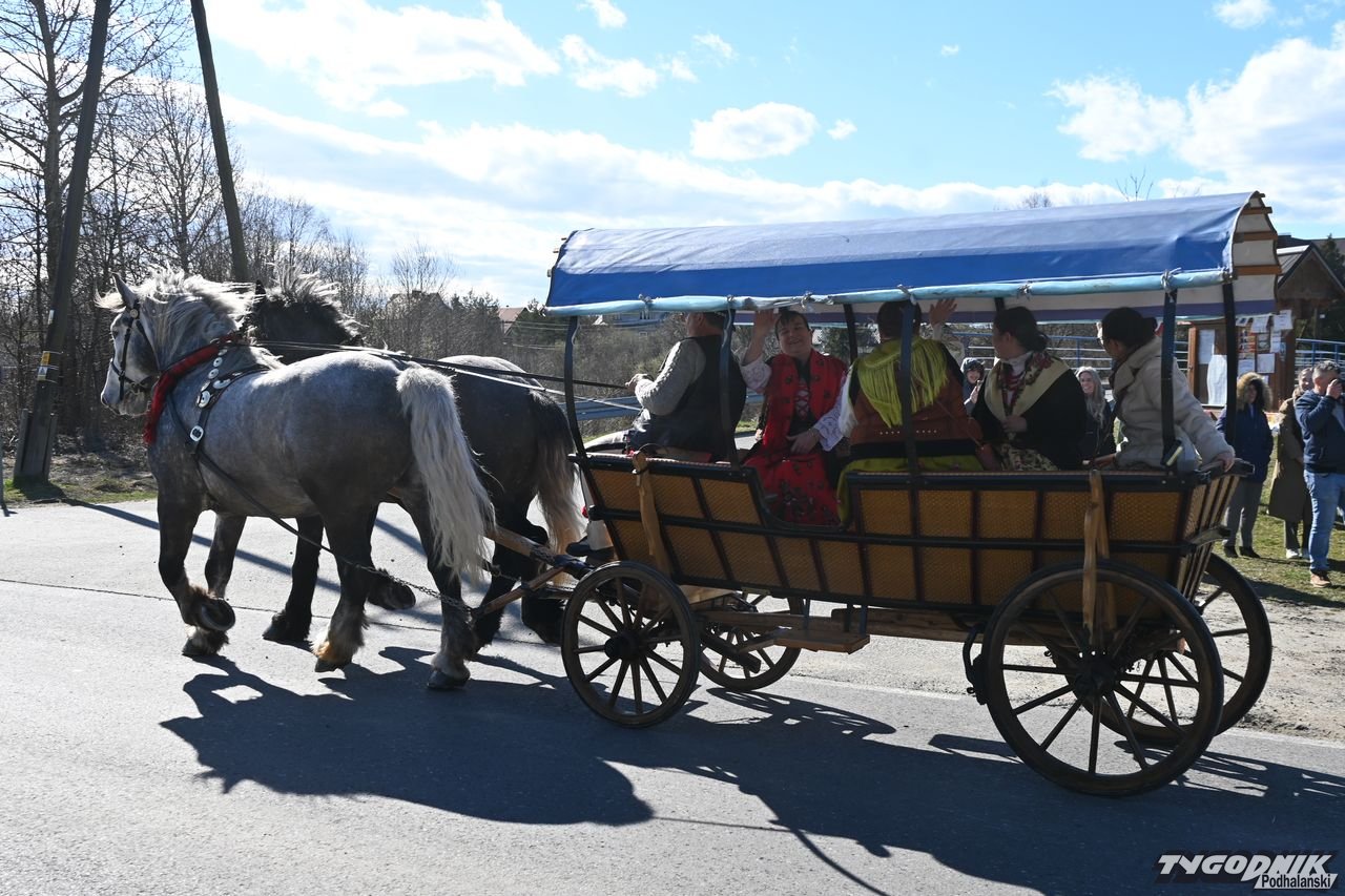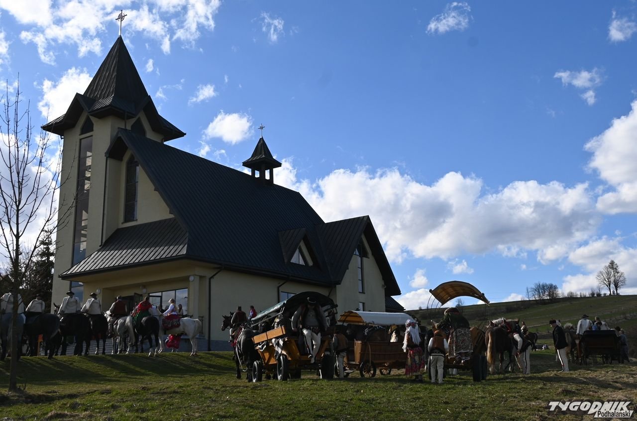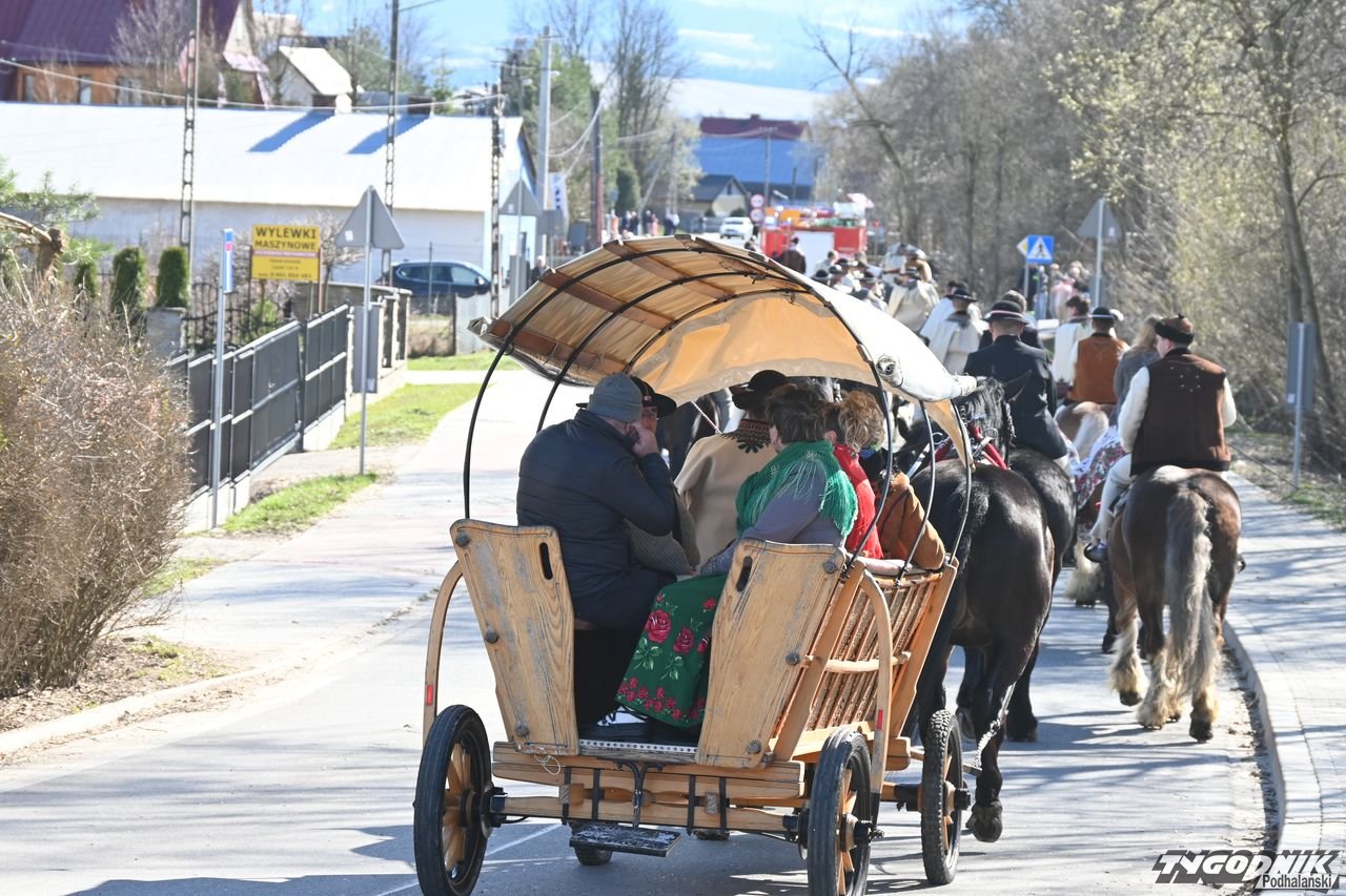 Ponad 40 członków banderii konnej, w tym kilka pań wyruszyło w lany poniedziałek 6 kwietnia z Klikuszowej do Morawczyny w góralskiej procesji z Chrystusem Zmartwychwstałym - w drodze do Emaus.
