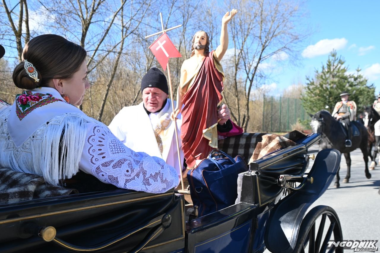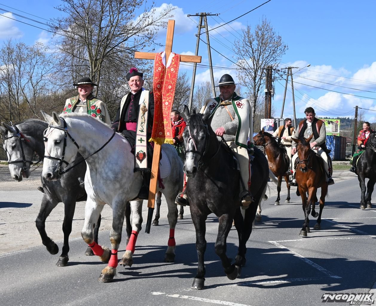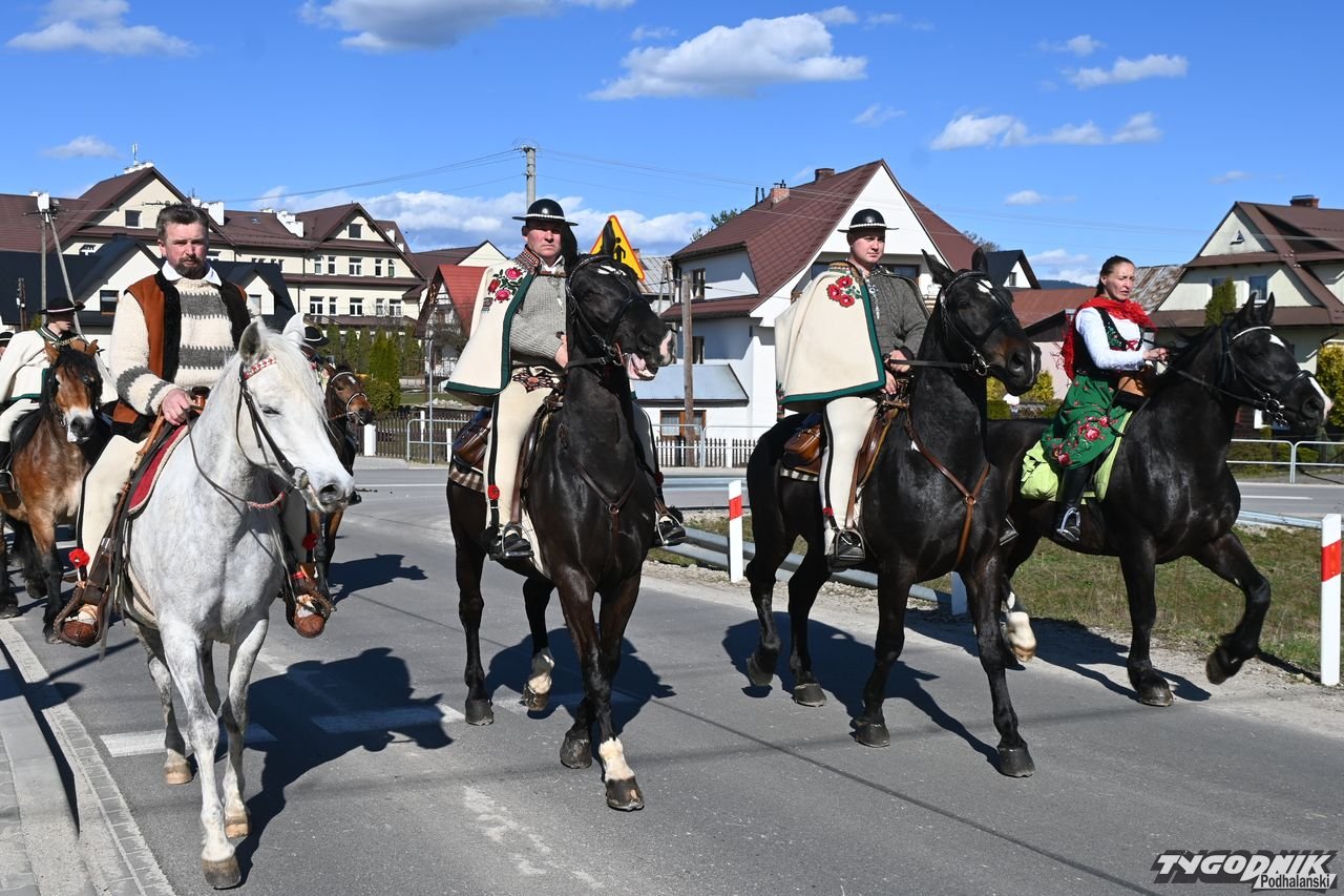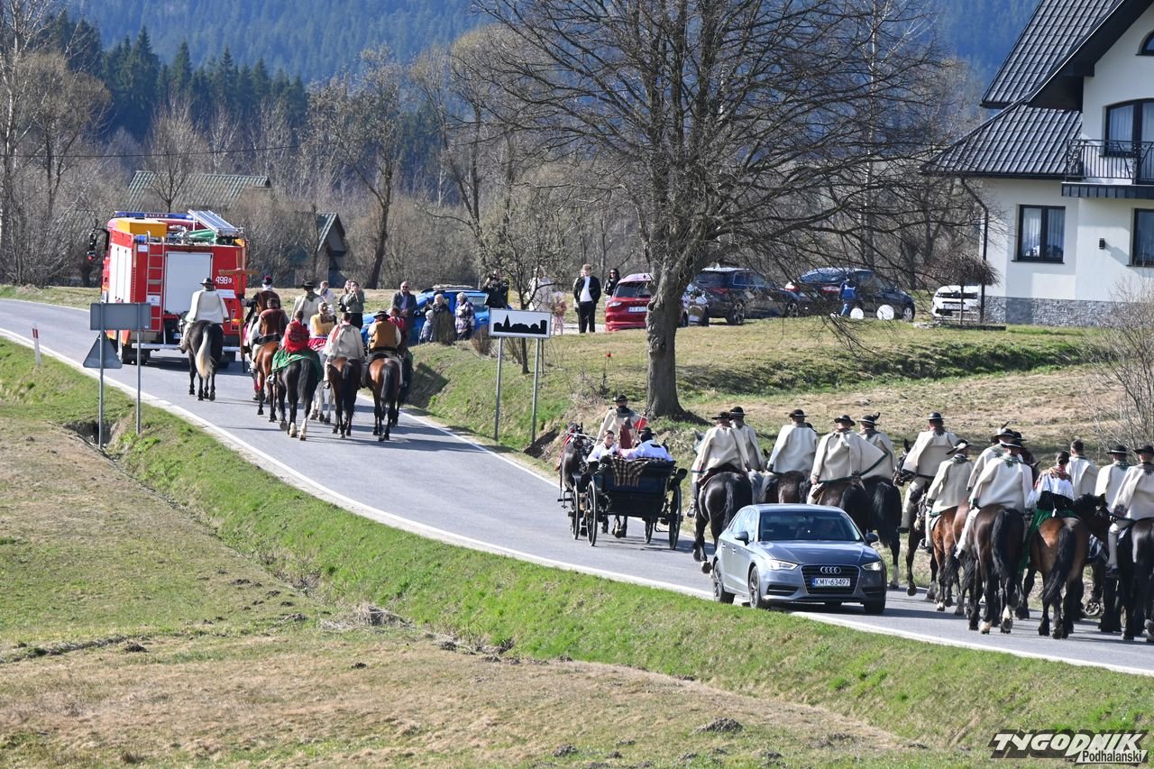Zanim jeźdźcy uformowali procesję, spotkali się na wspólnej modlitwie w kościele św. Marcina w Klikuszowej. Potem wyruszyli na trasę. Wszyscy byli ubrani w stroje regionalne. Na czele podążał na swoim koniu ks. prałat Władysław Zązel, który trzymał w ręku wielki drewniany krzyż z czerwoną stułą. Z kolei w lando była wieziona figura Chrystusa Zmartwychwstałego. Siedział koło niej proboszcz z Klikuszowej ks. Stanisław Szklany. W czasie procesji jeźdźców pozdrowiało bardzo wielu górali i turystów, którzy zgromadzili się na trasie przejazdu.