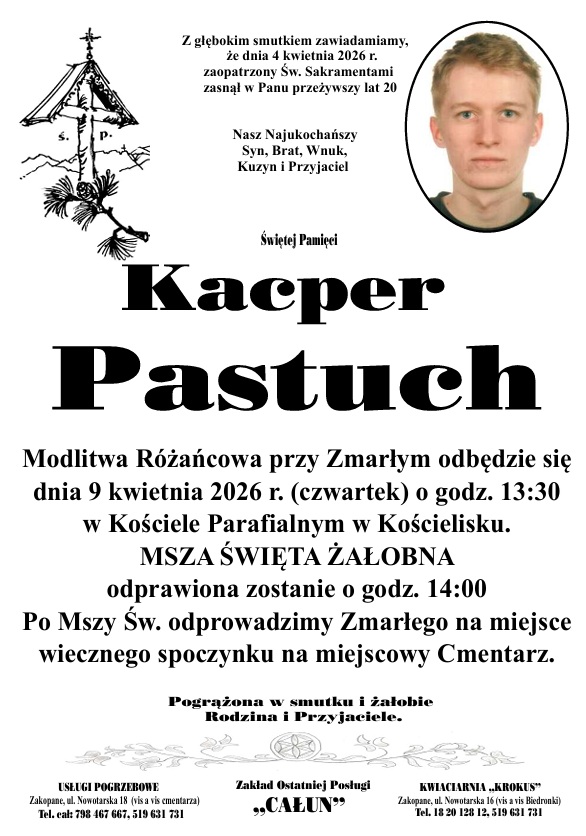 2026-04-07 21:28 Dwie czarne suki do odebrania w Ratułowie 2026-04-07 21:00 Prezes Kraków Airport: Amerykanie do nas wrócą 2026-04-07 20:10 Wyczerpani turyści utknęli pod Kasprowym Wierchem. Śmigłowcem polecieli ratownicy TOPR 2026-04-07 19:00 Nowe mapy ewidencyjne w powiecie. Trwa cyfryzacja danych geodezyjnych 1 2026-04-07 18:00 Nowy Targ na niebiesko. XI obchody Światowego Dnia Świadomości Autyzmu 2026-04-07 17:00 Rekordowe ilości turystów w Małopolsce, Zakopane i okoliczne termy na topie zainteresowań 2026-04-07 16:25 Bezpieczniejsza Wielkanoc na małopolskich drogach. Liczba wypadków spadła o blisko 40 procent 2026-04-07 15:23 Reanimacja w Chabówce (WIDEO) 2026-04-07 15:00 Słoneczny, ale chłodny poranek. W nocy opady śniegu (WIDEO) 2026-04-07 14:01 5 pomysłów na małe gadżety do biura, które robią duże wrażenie 2026-04-07 14:00 Młody mieszkaniec Poronina powalczy o medal w USA na robotycznych mistrzostwach świata 1 2026-04-07 13:01 Bezpieczeństwo pasażerów - dlaczego warto rozszerzyć ochronę o NNW? 2026-04-07 13:00 112 km na godz. w terenie zabudowanym. 20-latek stracił prawo jazdy 4 2026-04-07 12:18 Jak usunąć rysy i ubytki w posadzce przemysłowej? Skuteczne metody naprawy 2026-04-07 12:00 Chłopiec zgubił się na Krupówkach. Strażnicy miejscy szybko odnaleźli rodziców 3 2026-04-07 11:59 Bezpieczeństwo informacji w firmie - jak spełnić wymagania normy ISO 27001 2026-04-07 11:30 Krwiobus na Placu Niepodległości w Zakopanem. Apel o oddawanie krwi w Światowy Dzień Zdrowia 1 2026-04-07 11:30 W Kuźnicach pusto. Coraz mocniej wieje 2026-04-07 11:10 Poszukiwany zatrzymany w Zakopanem. Dzielnicowi skutecznie namierzyli 32-latka 2 2026-04-07 10:54 Powroty po świętach i korki na trasie Zakopane-Nowy Targ 1 2026-04-07 10:00 Zapraszamy na Prezentacje Form Teatralnych "Bajkluś" 2026-04-07 09:00 Fotoradar coraz bliżej 1 2026-04-07 08:30 Dzień Otwarty Sanepidu w Zakopanem. Zdrowie i edukacja na wyciągnięcie ręki 4 2026-04-07 08:00 Wielkanocni jeźdźcy (ZDJĘCIA) 5 2026-04-06 20:59 Psy z nowotarskiego schroniska czekają na Was! 2 2026-04-06 20:00 Wojna - klatka po klatce 1 2026-04-06 18:59 Pięknie żegna się z nami Giewont, ale w środę znowu śnieg 3 2026-04-06 18:00 Kryminał, który wystraszył Kościelisko 2 2026-04-06 17:00 Spośród swojego ludu ocalał tylko on. Mamy dla Was książki 2026-04-06 16:00 Zbliża się kolejna edycja Street Food Polska Festival na nowotarskim Rynku 1 2026-04-06 14:58 W Białym Dunajcu zaginął 61-letni mężczyzna. Trwają poszukiwania 2026-04-06 14:00 Wielkanocna woda 2026-04-06 13:20 Trudno dziś było dotrzeć do Kuźnic. Mało busów, mało autobusów 8 2026-04-06 12:36 Korki na zakopiance. Turyści wracają po świątecznym weekendzie (WIDEO) 12 2026-04-06 12:30 Zawody na starym sprzęcie narciarskim O Wielkanocne Jajo (ZDJĘCIA, WIDEO) 4 2026-04-06 12:00 Urobek u wójta 14 2026-04-06 11:01 Uciekła z Grodna, odnalazła siebie w Tatrach 4 2026-04-06 10:00 Tischner - doświadczenie 2025. Wernisaż wystawy 2026-04-06 09:00 Droga do Morskiego Oka ponownie otwarta. W Tatrach nadal obowiązuje 3. stopień zagrożenia lawinowego 2026-04-06 08:00 Spotkanie autorskie z Agnieszką Szymaszek, autorką książki Od Murania mgła 2026-04-05 22:41 Zmarła Małgosia Rybak, nasza redakcyjna koleżanka 2026-04-05 21:00 Beti śpiewa dla dzieci 2026-04-05 20:00 Droga nie tylko rowerowa 2 2026-04-05 19:00 Nonsens ma sens 2026-04-05 18:00 Zabytki po nowemu: nowi ludzie, nowe plany Towarzystwa Opieki nad Zabytkami 2026-04-05 17:00 Wielkanocne zające pod Giewontem 2026-04-05 16:00 Niebawem rusza drugi sezon Podhalańskiej Amatorskiej Ligi Darta 1 2026-04-05 15:00 Rozpoczął się okres godów u płazów 3 2026-04-05 14:00 Nasza akcja społeczna. Przywracamy pamięć Julii Ladzińskiej 1 2026-04-05 13:00 Można było na nich grać, gdy dzwony kościelne milczały (WIDEO)