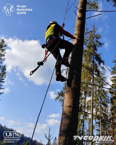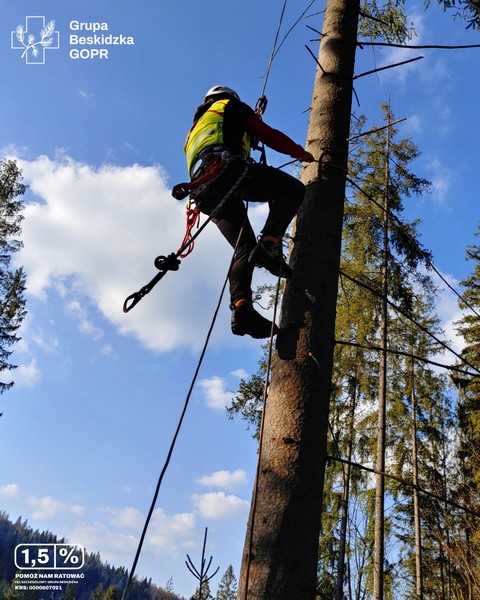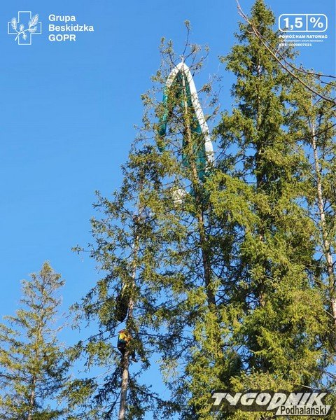 Paralotniarz zawisnął na drzewie. Ratował go GOPR
