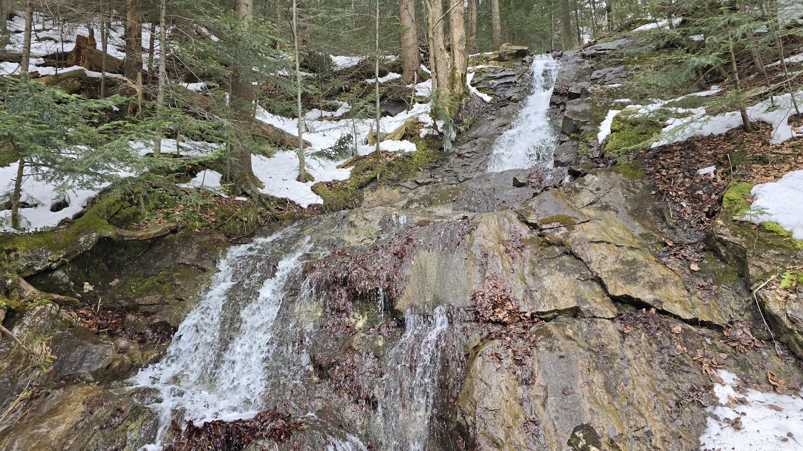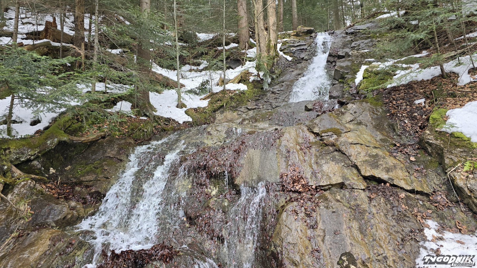Na Drodze pod Reglami jeszcze sporo śniegu. Tylko miejscami nie ma lodu i zmrożonego śniegu. Dziś w godzinach popołudniowych na szlaku nie było prawie nikogo. Pięknie prezentuje się wodospad Spadowiec położony między Doliną Białego a Doliną ku Dziurze. W nocy ma poprószyć śnieg, poprawa pogody od piątku i codziennie parę stopni cieplej.