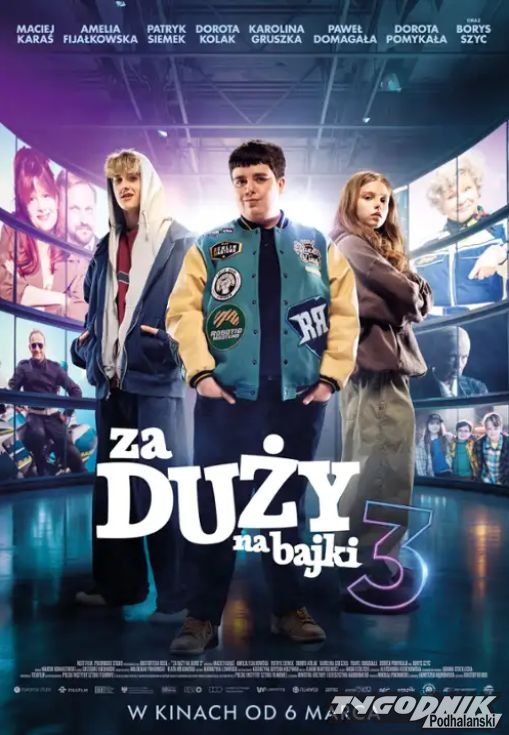 Kino „Sokół” przy ul. Orkana 2 zaprasza Was z kolei na polską komedię familijną „Za duży na bajki 3”. Waldek (Maciej Karaś), Delfina (Amelia Fijałkowska) i Staszek (Patryk Siemek) wracają na ekrany kin, by zmierzyć się z hejtem w sieci, gdy złośliwy komentarz Waldka wywołuje lawinę nienawiści, zagrażającą jego przyjaciółce. Seans w „Sokole” w sobotę 11.04 o godzinie 14.10.