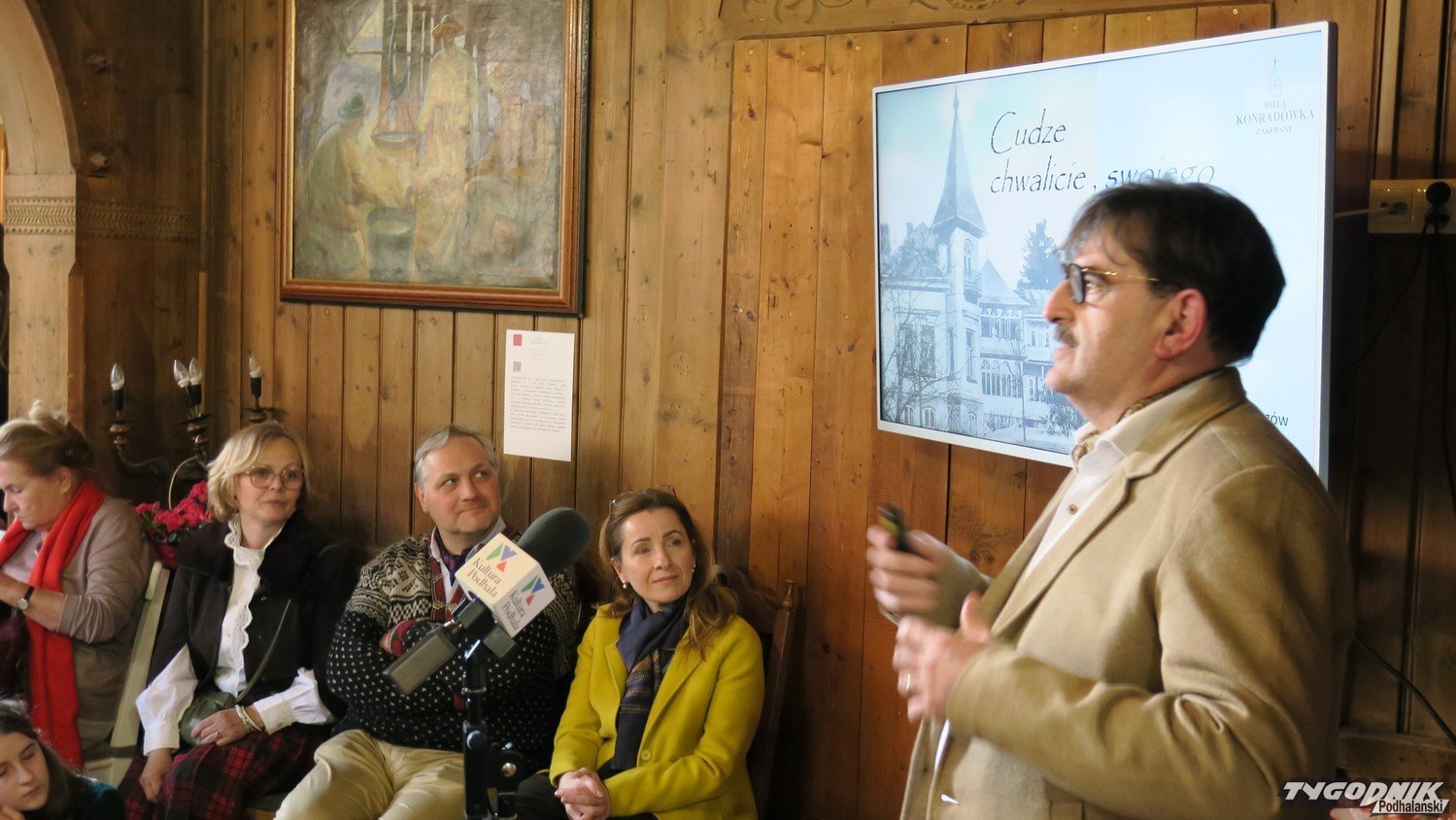Towarzystwo Opieki nad Zabytkami Oddział Podhalański w Willi Konradówka z powodzeniem zorganizowało pierwsze spotkanie z cyklu "Swego nie znacie, cudze chwalicie". To propozycja dla wszystkich zainteresowanych Zakopanem. Zarówno mieszkańców, jak i osób, które chcą lepiej poznać unikalny charakter Podhala. Licznie przybyłych gości witała Agata Nowakowska-Wolak, prezes TOnZ w Zakopanem. Przypomniała, że spotkania będą miały formę wykładów i rozmów, sprzyjających wymianie wiedzy i refleksji nad lokalnym dziedzictwem, a przede wszystkim, poznaniu go z bliska. Tym razem historie rodzinne opowiadał z humorem gospodarz miejsca, Krystian, a jego żona Alicja Nowina-Konopka oprowadzała nas po historycznych wnętrzach, które pod okiem nowych właścicieli odzyskują dawny blask. Bowiem zakopiańska Konradówka przez ponad sto lat była świadkiem niezwykłych historii. Gościła w swych pięknych wnętrzach od naukowców i artystów, przez wojskowych, po postaci owiane legendą. Jej dzieje to opowieść o ludziach, kulturze i burzliwych losach XX wieku.