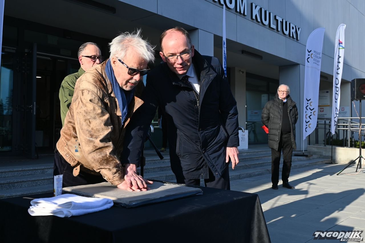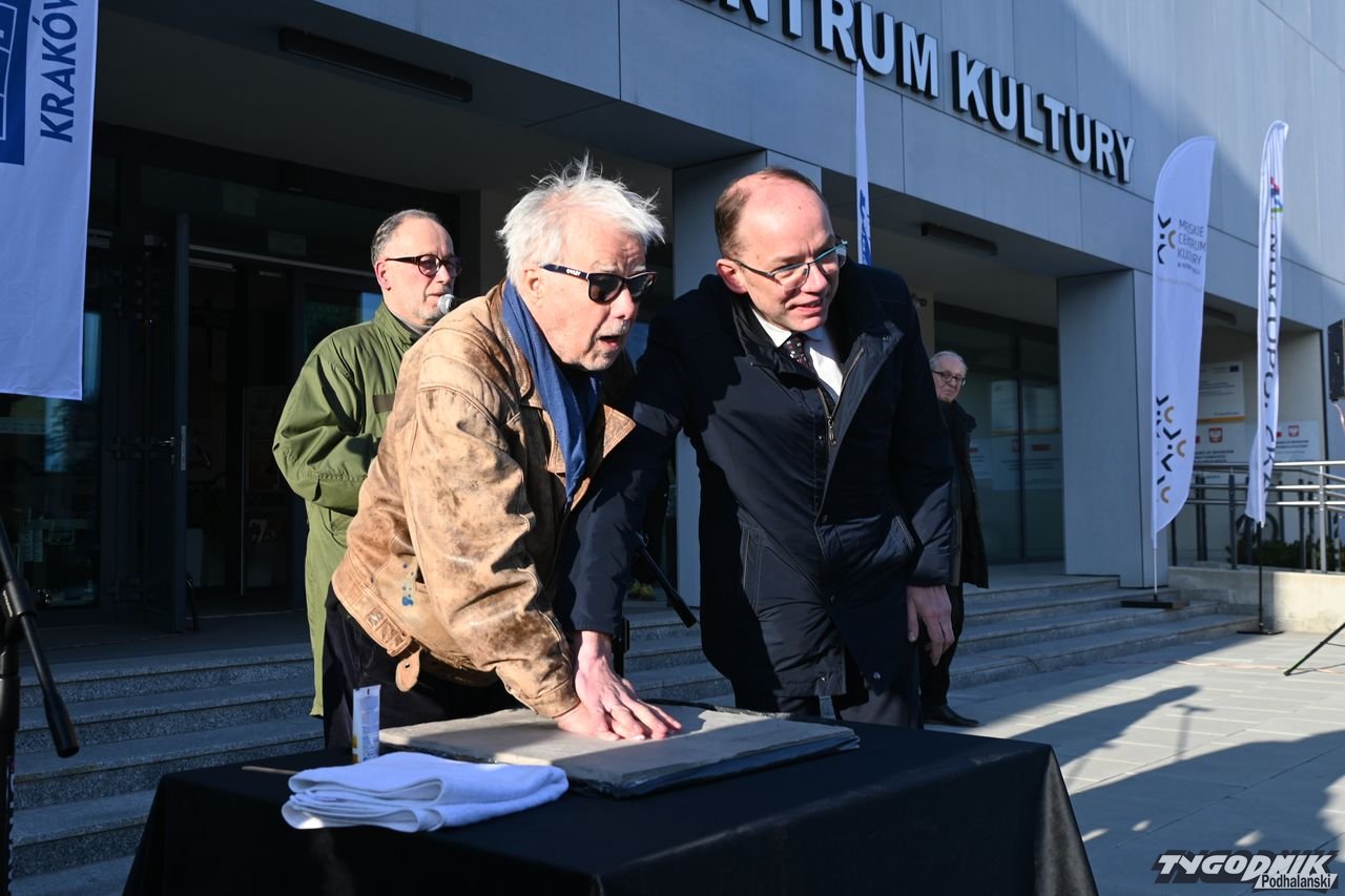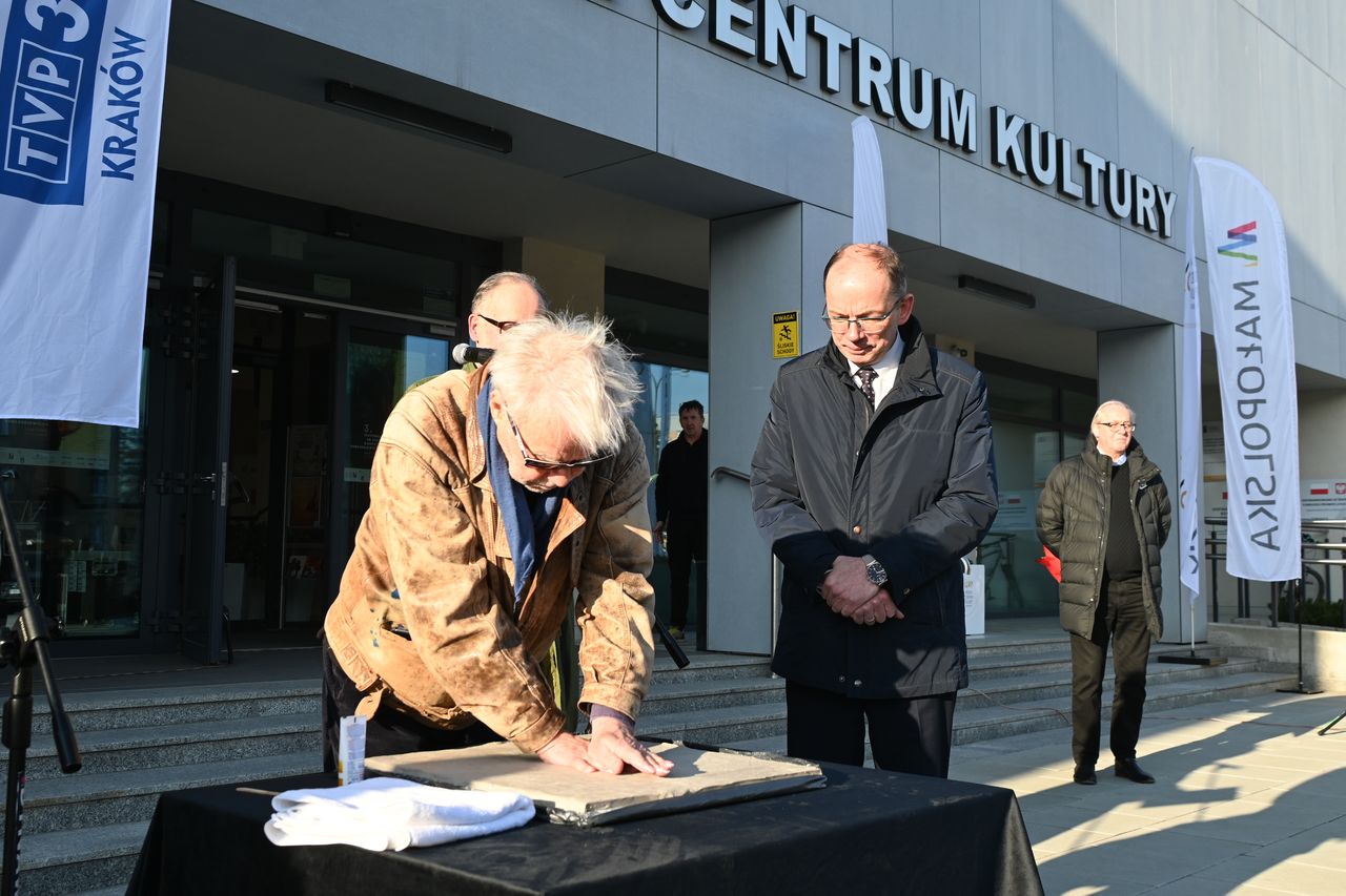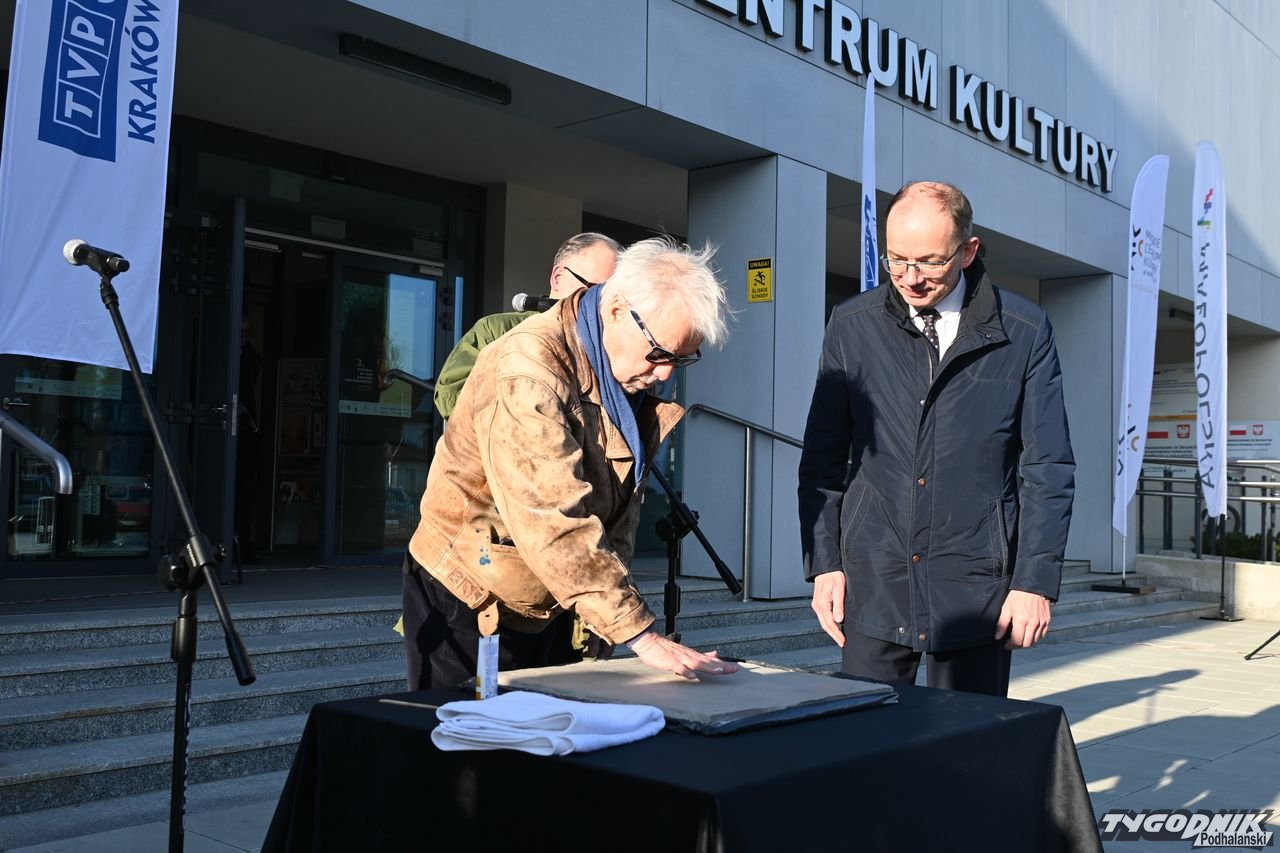 Jan Kanty Pawluśkiewicz odcisnął swoją dłoń i złożył podpis, by w ten sposób zainaugurować nowotarską Aleję Gwiazd przed Miejskim Centrum Kultury w stolicy Podhala.