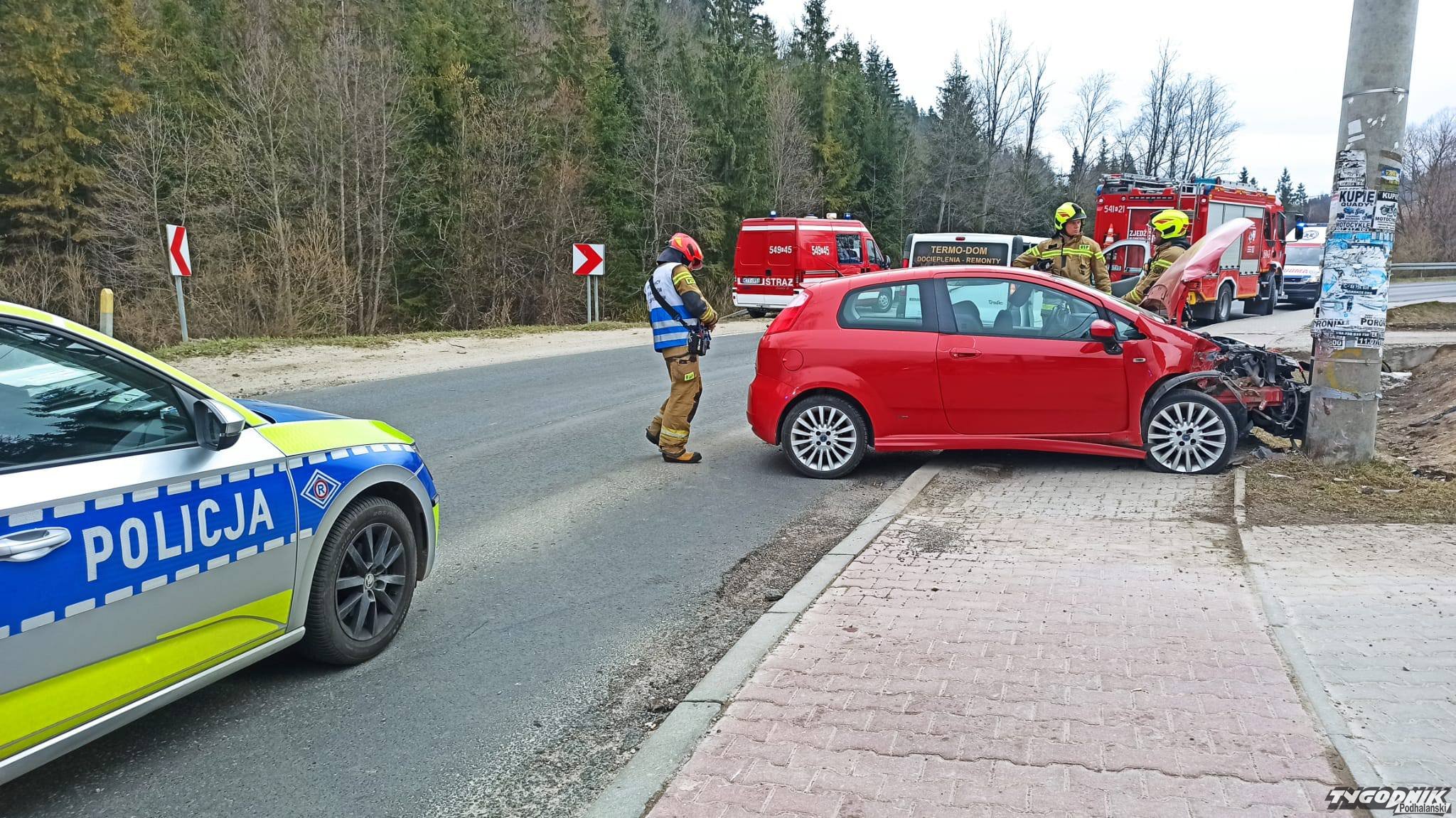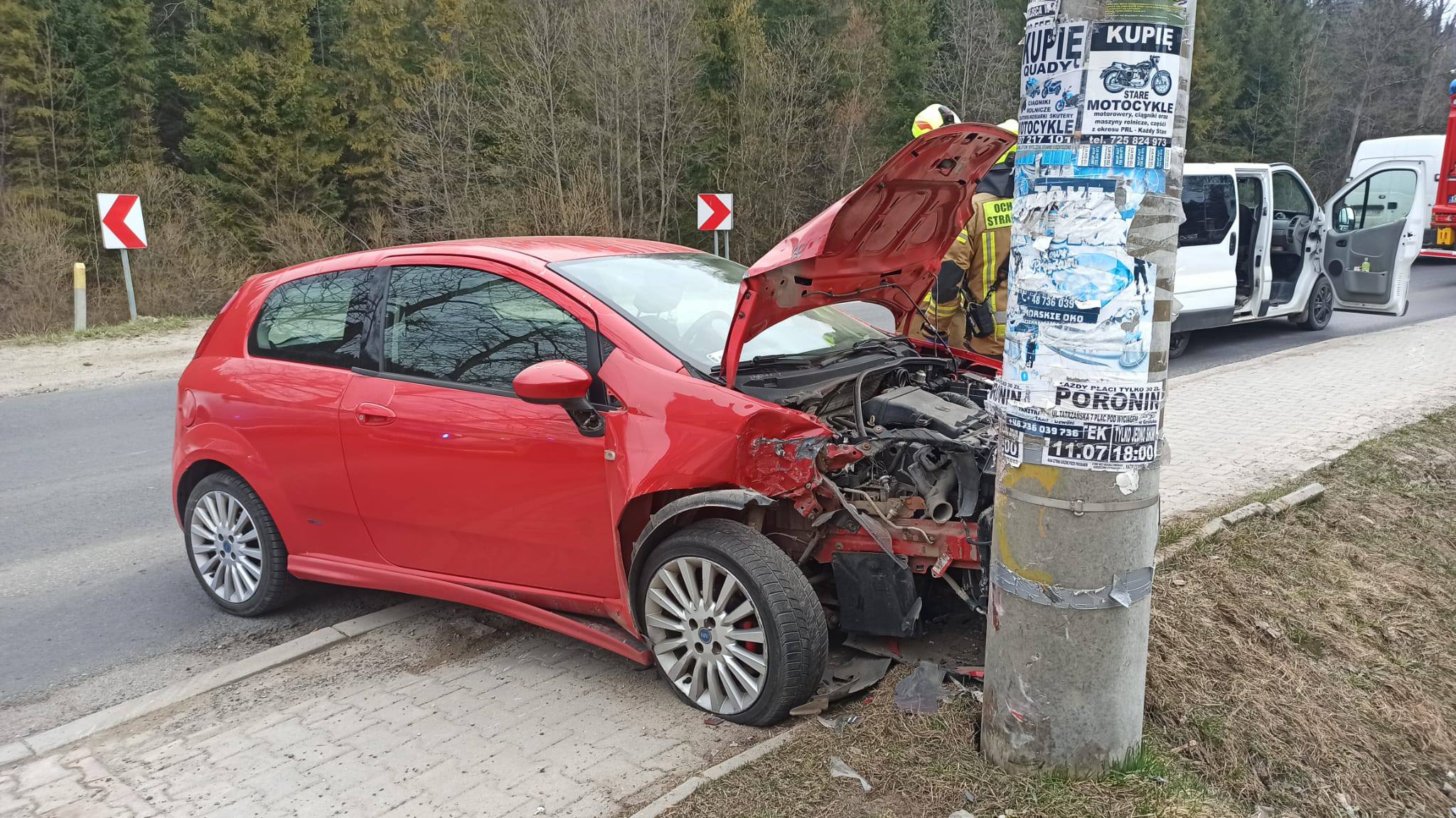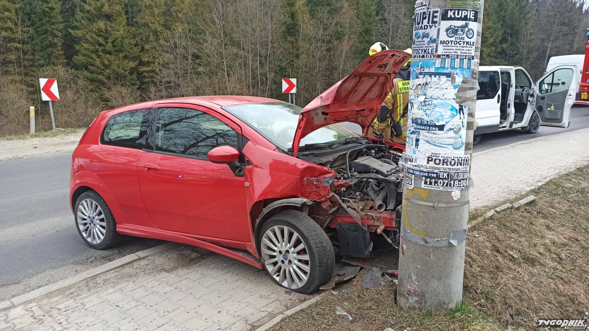 Dziś przed godz. 10 w Poroninie samochód uderzył w ślup.