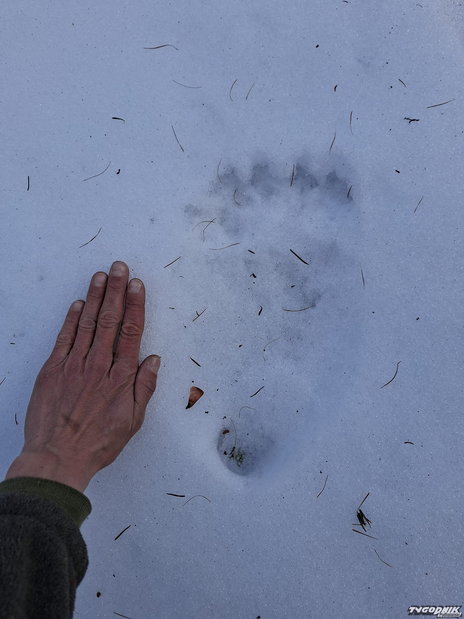 W lesie "wprawne oko" widzi mnóstwo tropów, a wśród nich największego drapieżnika Karpat - niedźwiedzia.