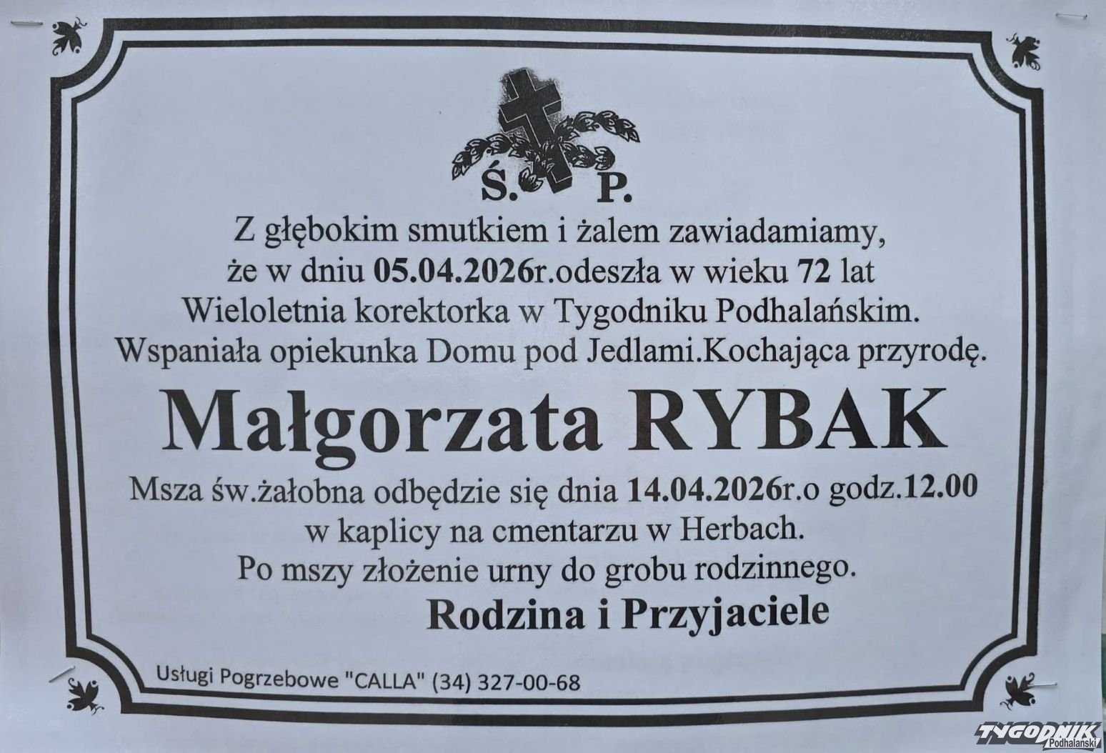 Bliscy, rodzina, znajomi, przyjaciele Małgosi Rybak są dziś na cmentarzu komunalnym w Herbach. Razem żegnamy naszą redakcyjną koleżankę.