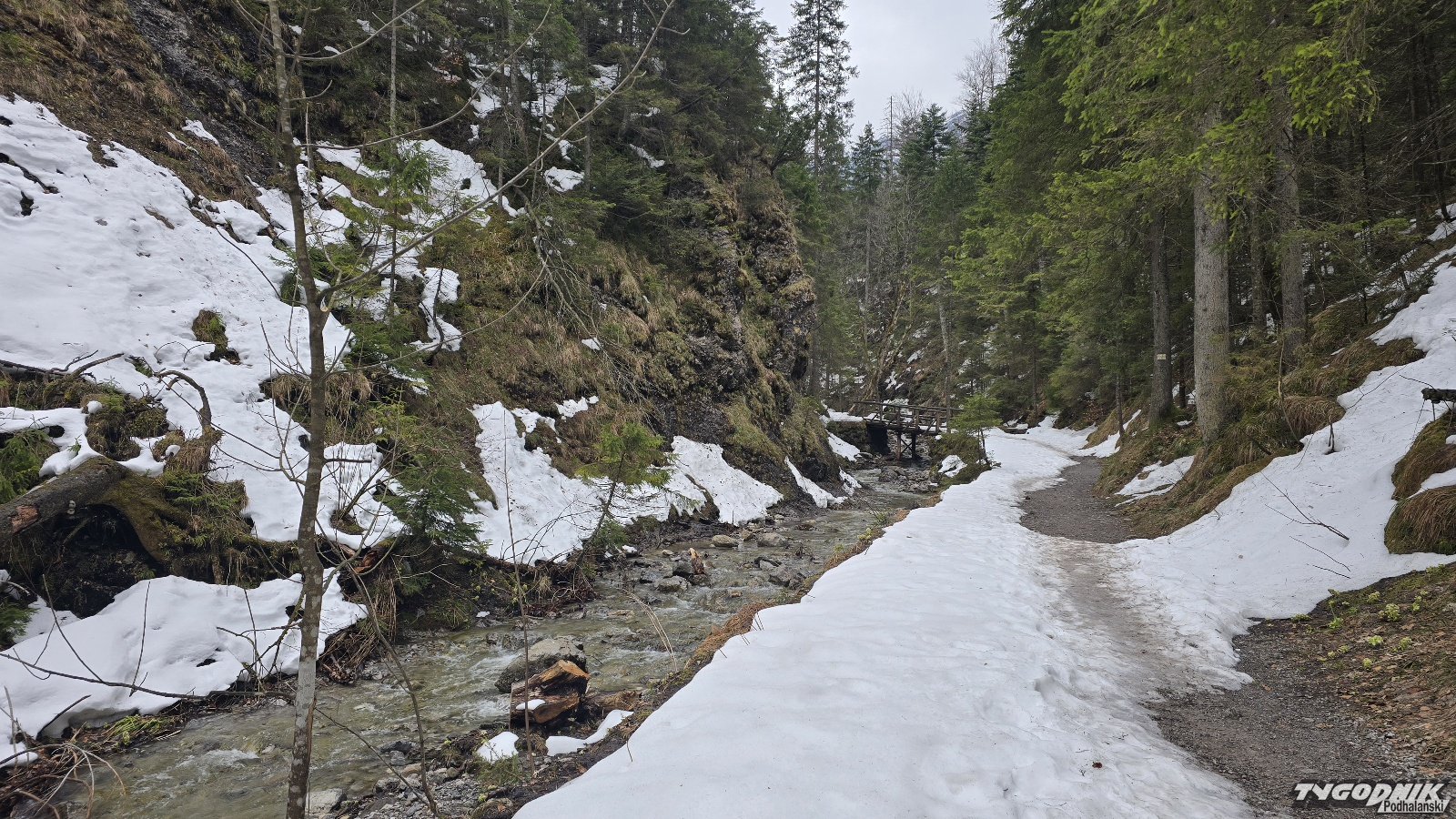 Na szlaku nawet w Dolinie Białego leży jeszcze mokry śnieg. Dziś rano w Zakopanem już 8 st. C., dodatnia temperatura również na Kasprowym Wierchu. Śnieg topnieje, ale to wciąż w Tatrach bardziej przedwiośnie niż wiosna. Spod śniegu wychodzą zasypane wcześniej lepiężniki, krokusy szczególnie obficie kwitną na Podhalu.