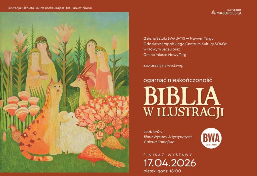 W Galerii Sztuki BWA JATKI w Nowym Targu - o/ Małopolskiego Centrum Kultury SOKÓŁ w Nowym Sączu prezentowana jest obecnie wystawa "Ogarnąć nieskończoność. Biblia w ilustracji" ze zbiorów Biura Wystaw Artystycznych - Galerii Zamojskiej.