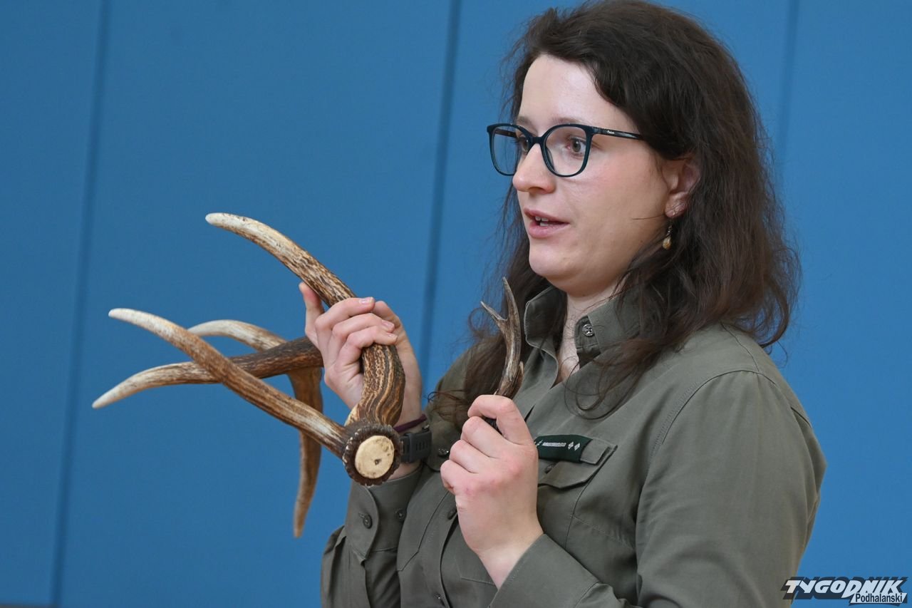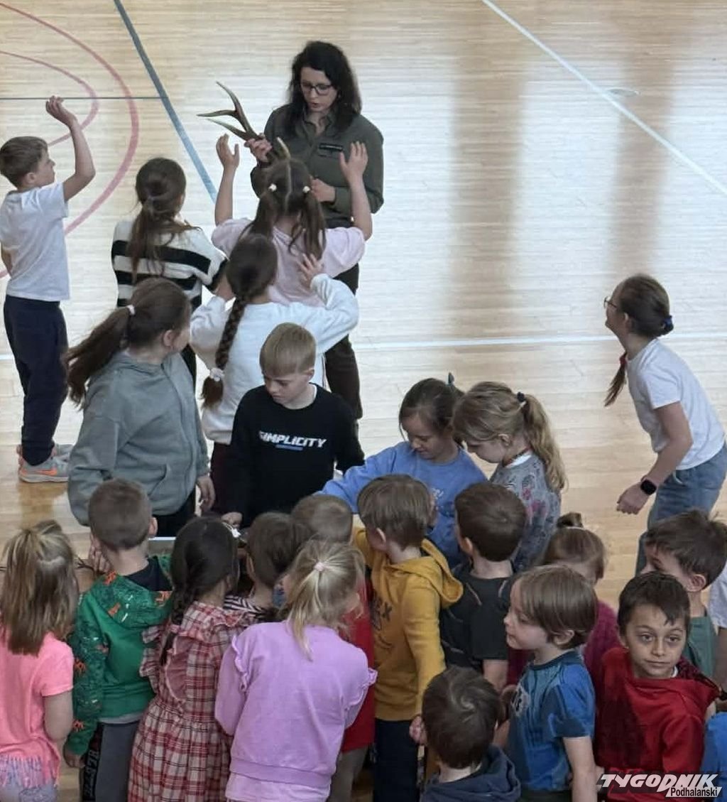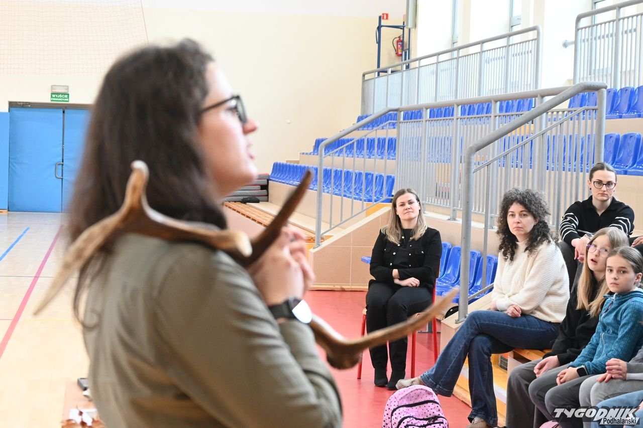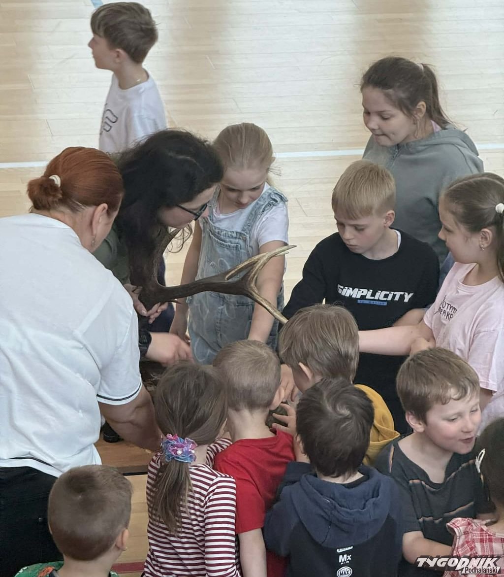 Cichowianie zadawali też chętnie pytania. Dorota Galica pokazywała również poroże jelenia oraz wyjaśniła, w jaki sposób je zrzuca.