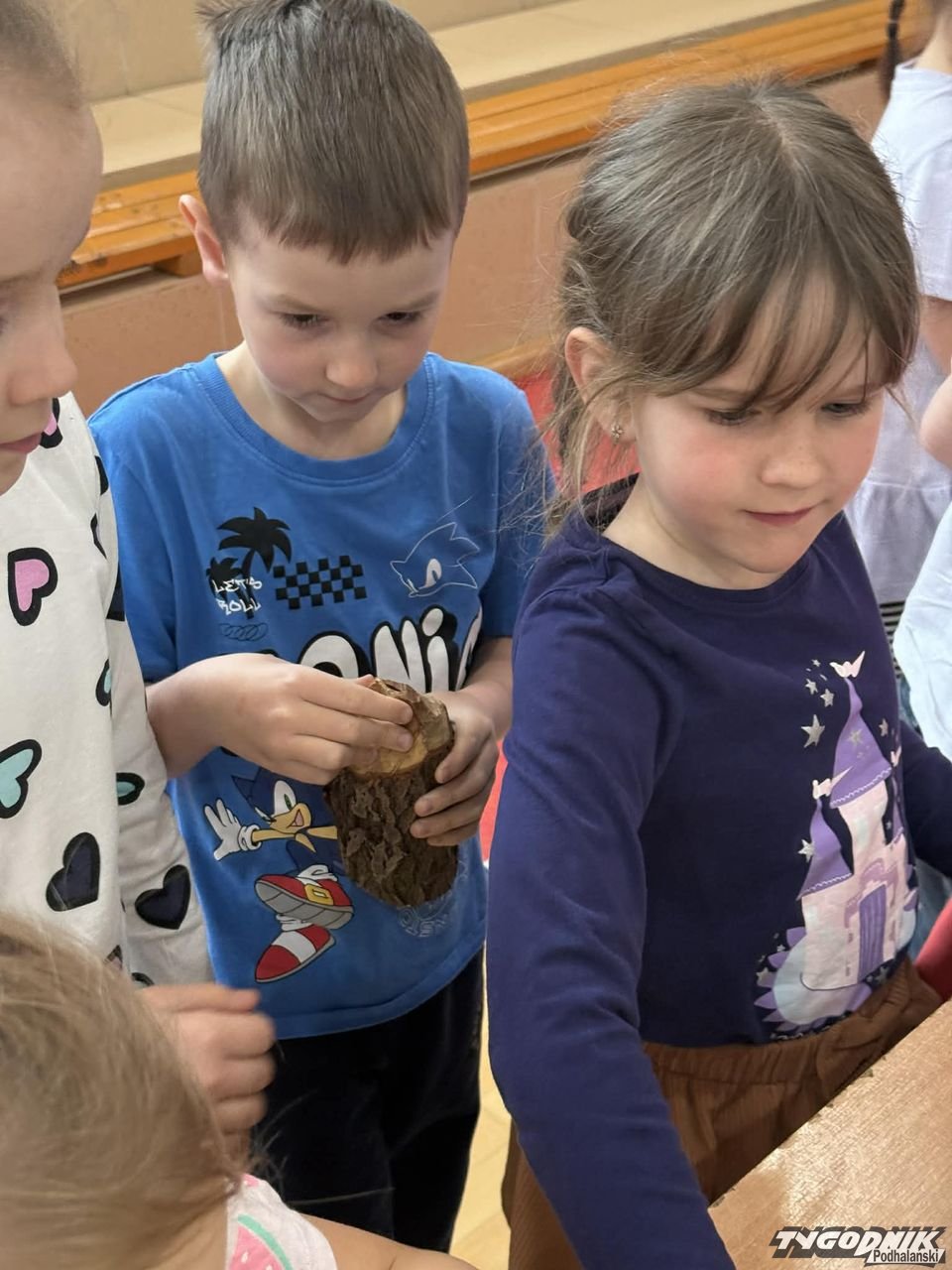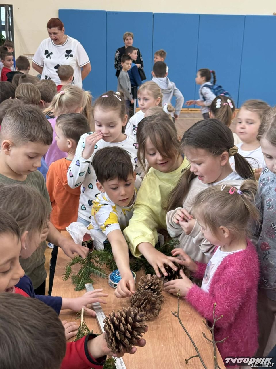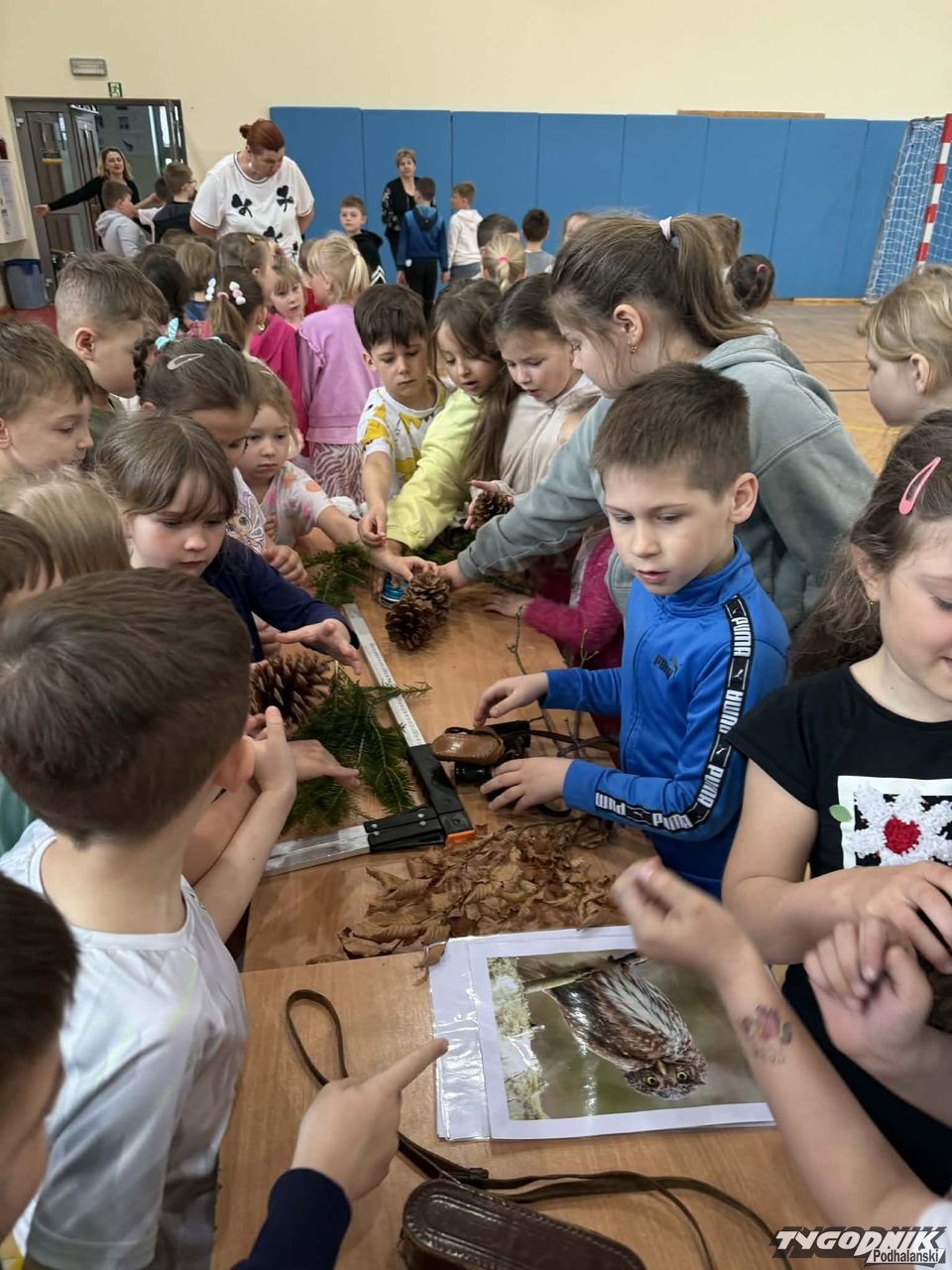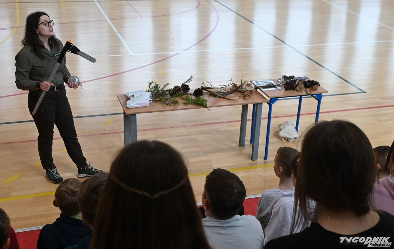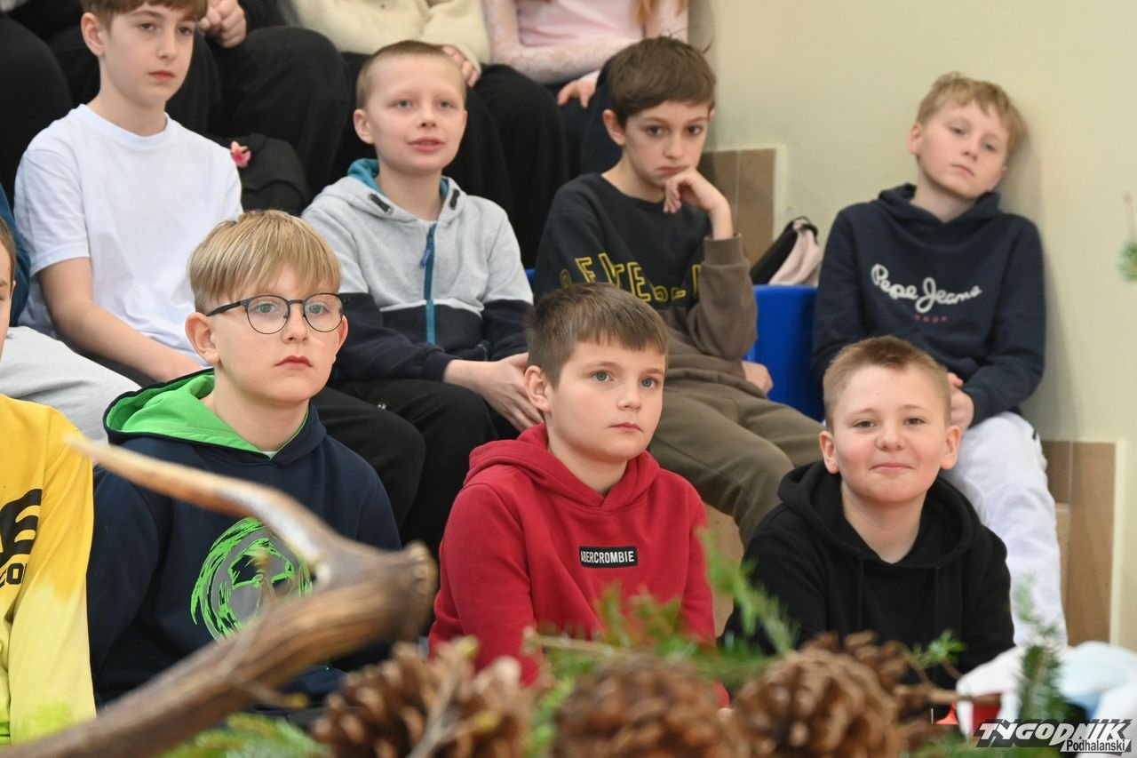 Dorota Galica z Lasów Państwowych - Nadleśnictwa Nowy Targ zaprezentowała uczniom różne sadzonki drzew, które przywiozła ze szkółki leśnej. Opowiadała o pracy leśników. Dzieci miały okazję poznać różne przyrządy do mierzenia drzew, miedzy innymi: klupę (inaczej średnicomierz leśny - narzędzie używane przez leśników, drwali oraz w przemyśle drzewnym do pomiaru średnicy drzew).