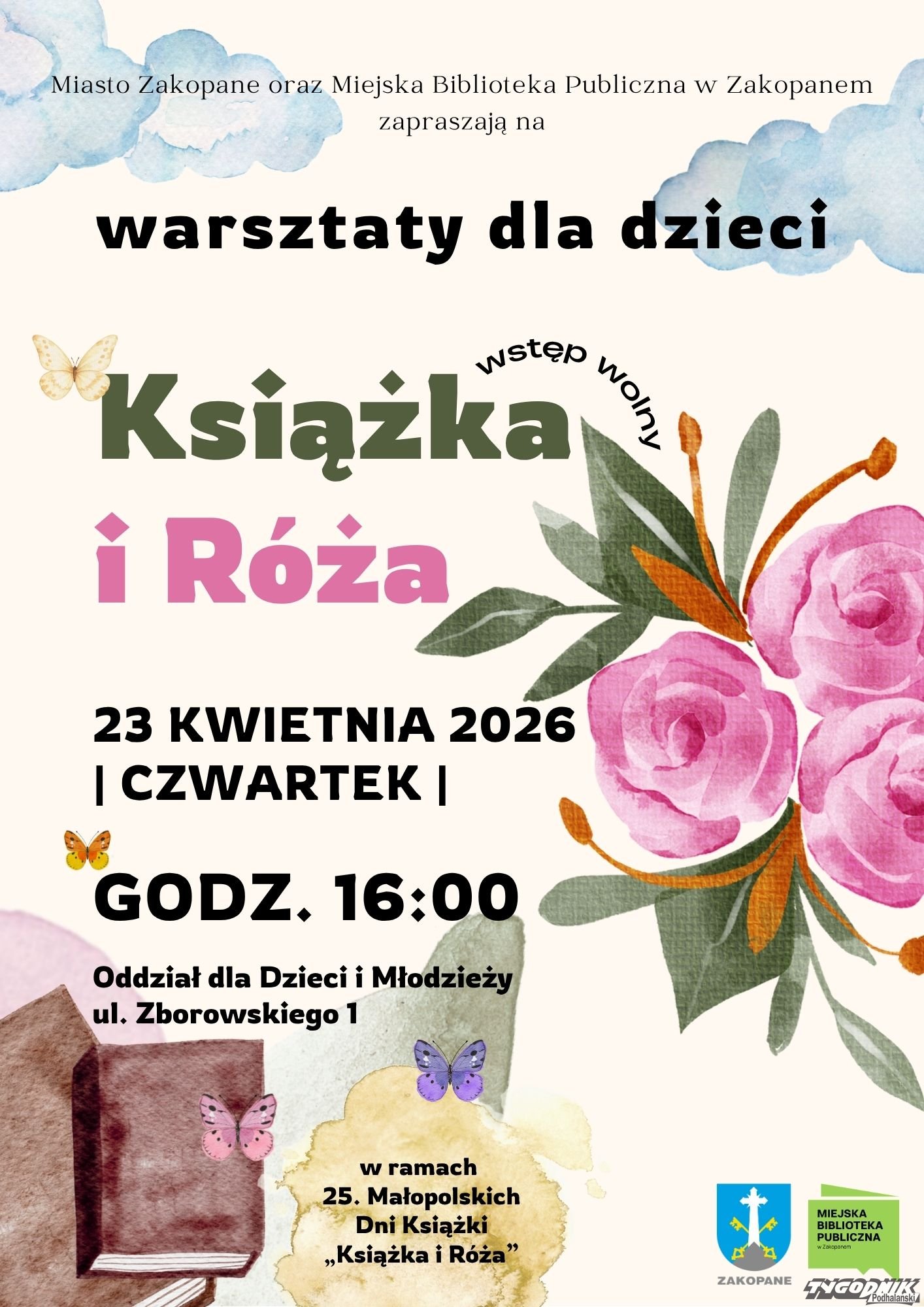 Miejska Biblioteka Publiczna w Zakopanem zaprasza najmłodszych czytelników na wyjątkowe warsztaty pod hasłem "Książka i róża".