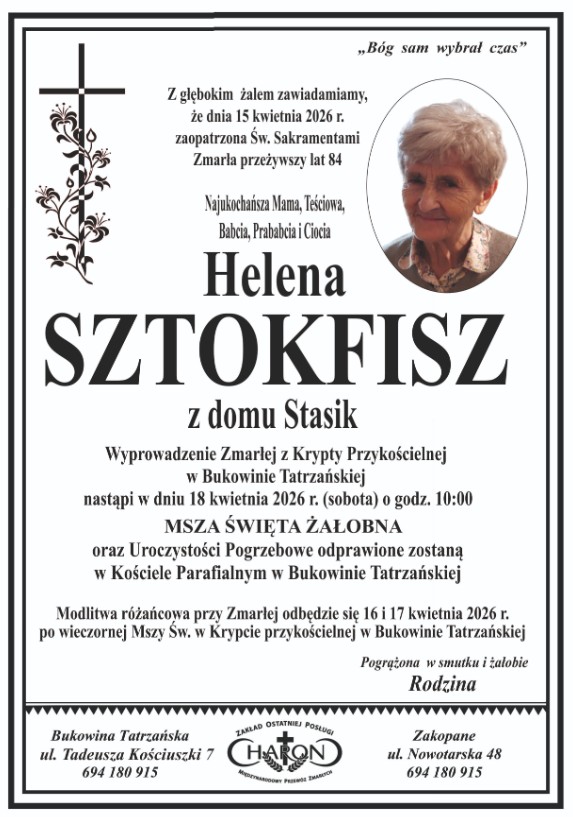 2026-04-17 15:15 Strażacka interwencja na osiedlu na ul. Orkana w Zakopanem 2026-04-17 15:00 Ostatnie pożegnanie wybitnego rzeźbiarza, samorządowca, pedagoga 2026-04-17 14:15 Domowe SPA krok po kroku: jak stworzyć relaksujący rytuał pielęgnacyjny w domu 2026-04-17 14:00 Joanna Staszak zaprasza na wystawę na Krupówki i festiwal Złote Kierpce (WIDEO) 2026-04-17 13:00 W Kuźnicach rano pusto, a wszystkie kolejki kursują 2026-04-17 12:12 Justyna Jarząbek wystąpi w Gminnym Ośrodku Kultury w Poroninie 2026-04-17 12:02 Zaproszenie na warsztaty dla najmłodszych czytelników 2026-04-17 12:00 Co robić w weekend w Zakopanem? 2026-04-17 11:42 Czym dokładnie jest telepraca? 2026-04-17 11:30 Komedia romantyczna dla ludzi o mocnych nerwach. Mamy dla Was bilety 2026-04-17 11:26 Ile kosztuje audyt energetyczny domu jednorodzinnego i kiedy ta inwestycja się zwraca? 2026-04-17 11:00 Strażnicy miejscy uratowali rannego krogulca. Interwencja trwała 12 godzin 3 2026-04-17 10:00 Nosal o poranku. Zapowiada się słoneczna sobota (WIDEO) 2026-04-17 09:00 Rozpoczyna się rozbiórka budynku na ul. Kasprusie 4 2026-04-17 08:01 Lepiężniki znowu wychodzą spod śniegu 2026-04-16 21:47 Czipowanie zwierząt w Maniowach. Gmina Czorsztyn dopłaca do zabiegu 5 2026-04-16 21:23 SP Szaflary mistrzem województwa w tenisie stołowym 2026-04-16 21:01 Jak działa Klub Seniora w Zakopanem. Kto może się do niego zapisać? 6 2026-04-16 20:28 Na uspokojenie. Piękny śpiew ptaków w Jaworzynce (WIDEO) 2026-04-16 19:59 Nowa inwestycja w Poroninie i utrudnienia na zakopiance (WIDEO) 5 2026-04-16 19:00 Mieszkańcy Poronina posprzątają gminę. W zamian otrzymają sadzonki drzew 2026-04-16 18:44 Mieszkańcy posprzątają brzegi Jeziora Czorsztyńskiego. Gmina zaprasza do wspólnej akcji 1 2026-04-16 18:31 Sceny niczym z filmu akcji, fałszywy policjant i agenci w czarnych okularach (WIDEO) 5 2026-04-16 18:23 Nowotarscy policjanci na obchodach Światowego Dnia Świadomości Autyzmu 2026-04-16 18:07 Po wypadku na Ustupie w Zakopanem. Nie żyje kierowca golfa 13 2026-04-16 18:00 W Spytkowicach niepotrzebne tekstylia można oddać do specjalnego kontenera 1 2026-04-16 17:30 Uroczyste przekazanie kluczy mieszkańcom bloku przy Kilińskiego w Rabce 2026-04-16 17:00 Dzień Ziemi w Rabce-Zdroju 1 2026-04-16 16:30 Spotkania sztuk. Artystyczny kalejdoskop 2026-04-16 16:00 Deweloper remontuje ulicę w Zakopanem 4 2026-04-16 15:58 Zmarł Andrzej Murzydło, wieloletni nauczyciel, wychowawca 2026-04-16 15:25 Plama ropopochodna przy dworcu PKP w Zakopanem. Interweniowali strażacy 2 2026-04-16 15:17 Oświetlenie na ul. Nowotarskiej naprawione 2 2026-04-16 14:58 Szpital w Nowym Targu. Będą pieniądze na dodatkowe badania 1 2026-04-16 14:30 Roślinna przesiadka w nowotarskiej bibliotece 2026-04-16 14:00 Seniorzy w centrum uwagi. Nowe inicjatywy i badanie potrzeb w Zakopanem 1 2026-04-16 13:30 Przed nami Tatrzański Festiwal Zespołów Góralskich "Złote Kierpce" 2026-04-16 12:32 Po wypadku na Ustupie poszkodowany kierowca z ciężkimi obrażeniami w szpitalu 2026-04-16 12:00 Mamy nowego komendanta straży pożarnej. Obowiązki objął mł. bryg. Rafał Bańka 2026-04-16 11:00 Dołącz do Klubu Seniora w Zakopanem. Ten klub to drugi dom, tętni pełnią życia 6 2026-04-16 10:30 Planowane przerwy w dostawie prądu w gminie Biały Dunajec 2026-04-16 10:14 Wypadek na Ustupie. Jedna osoba zakleszczona (ZDJĘCIA, WIDEO) 2026-04-16 10:00 15. Ludźmierskie Spotkanie ze Słowem 2026-04-16 08:59 Nocna kolizja i nietrzeźwy kierowca w Starem Bystrem 1 2026-04-16 08:00 Jak żyć, wójcie, jak żyć 4 2026-04-15 22:28 Woda niezdatna do spożycia na Słodyczkach. Wyznaczono zastępczy punkt poboru 2 2026-04-15 21:59 Podhale rozgromiło Sokół Kleczew 4:0 1 2026-04-15 21:34 Strażacy z Podhala uczcili pamięć zmarłego druha. O 18:00 zawyły syreny 8 2026-04-15 21:04 Fundamenty skończone pojawiły się początki ścian 4 2026-04-15 20:20 Maruszyna. Pożegnanie Iwony Jarząbek-Wilkus (ZDJĘCIA)