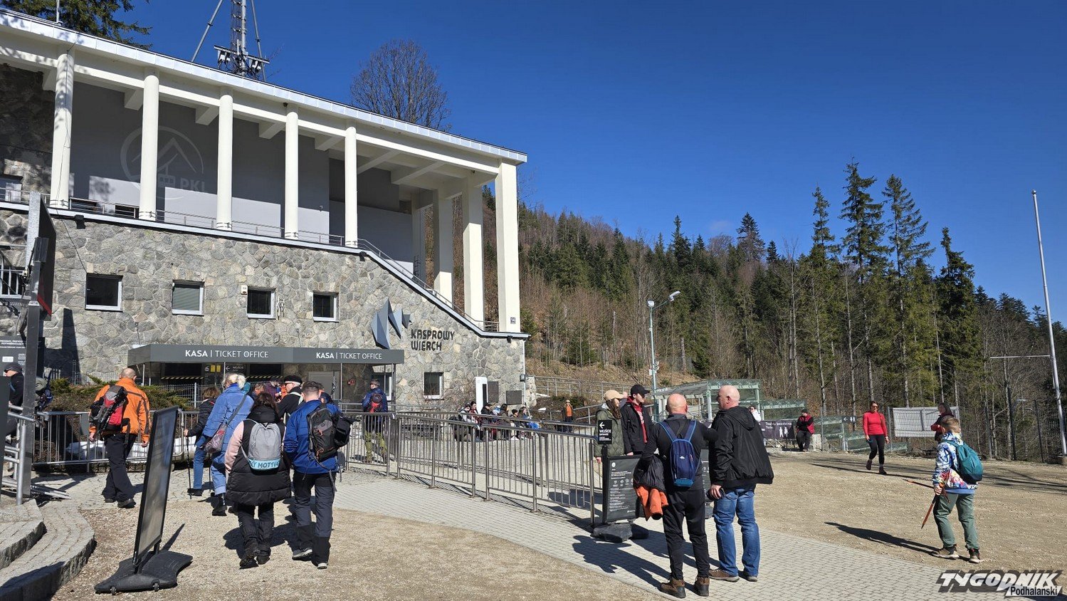 Zakopane. W Kuźnicach panuje dziś niewielki ruch turystyczny. Mimo sprzyjającej, słonecznej aury, przy dolnej stacji kolejki na Kasprowy Wierch nie tworzą się kolejki.