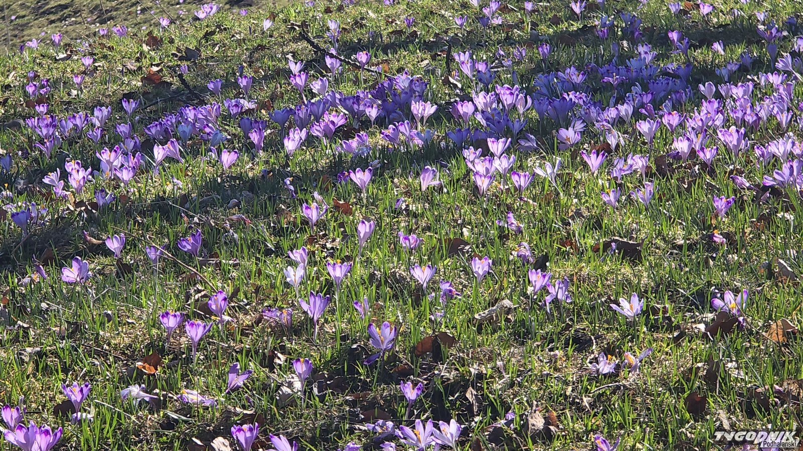 Krokusów już mniej niż tydzień temu, ale łąki nadal fioletowe.