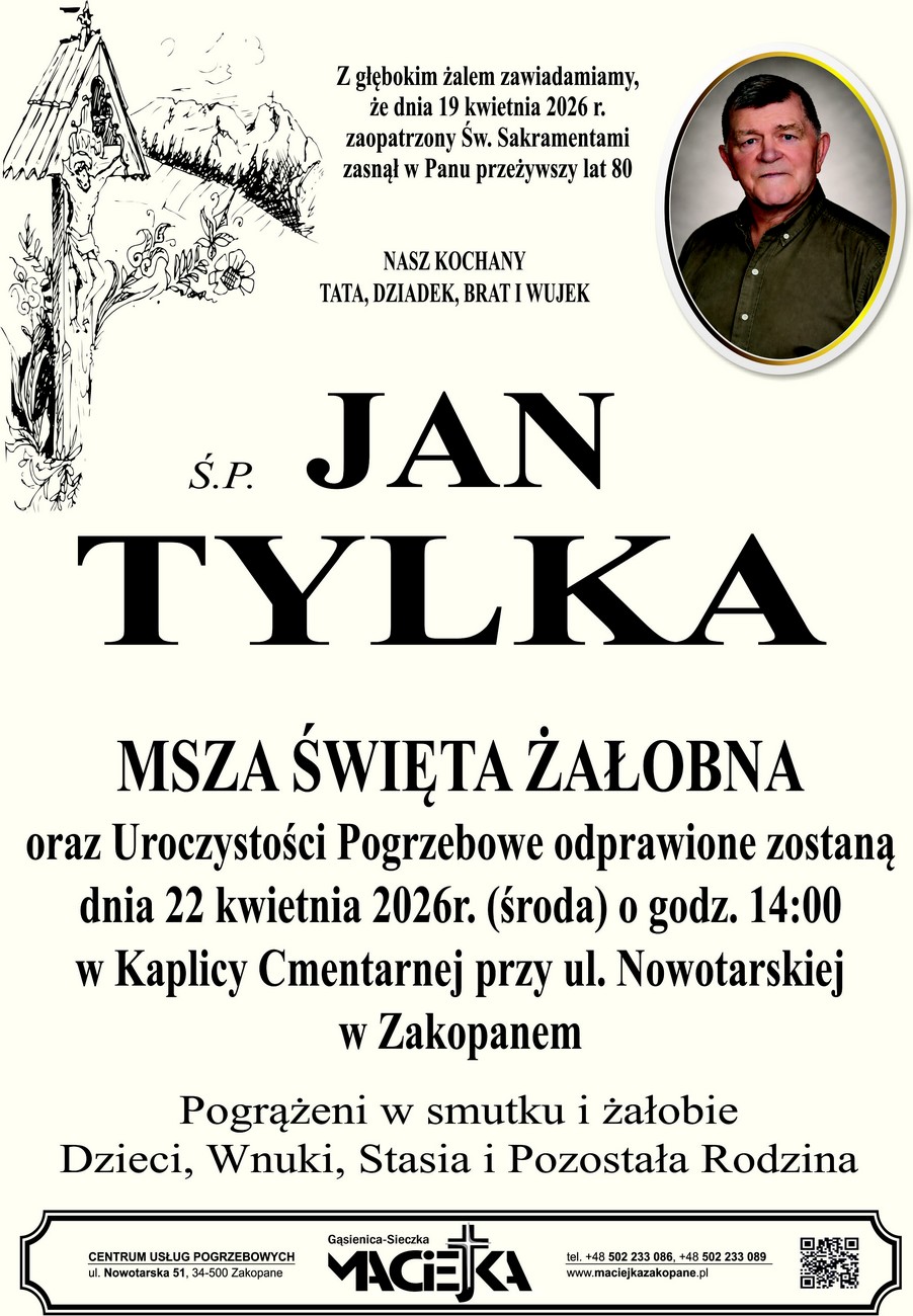 2026-04-21 12:01 Jak wybrać altanę ogrodową odpowiednią do małego ogrodu przy domu? 2026-04-21 12:00 Samorządowcy z powiatu tatrzańskiego z wizytą u Metropolity Krakowskiego kard. Grzegorza Rysia 2026-04-21 11:30 2. Konkurs Literacki "Gwarą pisane". Zgłoszenia 2026-04-21 11:01 Gotowe projekty domów: na co zwrócić uwagę przed zakupem? 2026-04-21 10:59 Po wybuchu w klubowym budynku, Lubań Maniowy zbiera pieniądze na odbudowę 2026-04-21 10:35 Złoto, mosiądz i barwione szkło: sposób na niebanalną i przytulną aranżację przestrzeni 2026-04-21 10:00 W Tatrach spadł śnieg. Na Kalatówkach znowu biało (WIDEO) 2026-04-21 09:00 SIM pod klucz 2026-04-21 08:04 Dachowanie na Rdzawce 5 2026-04-21 08:00 Wzmożone weekendowe działania policji na terenie powiatu nowotarskiego 2026-04-20 23:27 Pożar w słynnym pustostanie w Zakopanem 2 2026-04-20 21:56 W Tatrach ma spaść prawie 10 cm śniegu, poprószy też na Podhalu? 2026-04-20 21:30 Wraca sprawa Gubałówki. Radni chcą nowych terenów sportowych w Zakopanem 17 2026-04-20 21:00 Jak żyć, wójcie, jak żyć 1 2026-04-20 20:32 Zamknięcie ulicy Kasprusie w Zakopanem 2026-04-20 20:00 Na stadionie lekkoatletycznym przy Orkana trenują prawie sami piłkarze 8 2026-04-20 19:00 Harda młodość na Krupówkach, czyli co to znaczy być góralem (WIDEO) 3 2026-04-20 18:01 Siatki druciane na wymiar: Zalety personalizowanych rozwiązań przemysłowych 2026-04-20 18:00 15. Spotkanie ze słowem - Za górala czy za pana? 2026-04-20 17:00 Znamy wyniki Tatrzańskiego Festiwalu Zespołów Góralskich Złote Kierpce 2026-04-20 16:30 Utrudnienia na ul. Małej Łąki. Powodem budowa sieci gazowej 2026-04-20 16:17 Wybuch w Maniowach. Relacja strażaków (WIDEO) 2026-04-20 15:28 Awantura w pociągu Gdynia-Zakopane. Nietrzeźwi pasażerowie zatrzymani w Poroninie 2026-04-20 15:07 Wybuch w klubie LKS Lubań Maniowy. Pół budynku zniszczone (WIDEO) 1 2026-04-20 15:00 Kolejny skacowany kierowca stracił dziś prawo jazdy, tym razem w Bukowinie Tatrzańskiej 1 2026-04-20 14:30 Podglądaj, co się dzieje wokół bacówki PTTK na Maciejowej 1 2026-04-20 14:00 Kilkusetmetrowe upadki z dużej wysokości w Tatrach. Ratownicy TOPR mieli pracowitą sobotę 3 2026-04-20 13:30 Trzy groźne oszustki zatrzymane przez nowotarskich policjantów na Śląsku 2 2026-04-20 13:02 Pijany kierowca stracił prawo jazdy, po zakrapianym weekendzie jechał na kacu 9 2026-04-20 12:30 Troje pijanych kierowców zatrzymanych w poniedziałkowe przedpołudnie 1 2026-04-20 12:00 Eksplozja gazu w Skawie 2026-04-20 11:00 Ranny rudzik uratowany przez strażników miejskich z Zakopanego 6 2026-04-20 10:00 W Tatrach chwycił mróz. Kiedy poprawa pogody? 2026-04-20 09:31 W środę Nowotarski Dzień Ziemi 2026-04-20 09:30 Konflikt o boisko API zakończony? Właściciel rezygnuje. Plan ma być zmieniony na Borach 9 2026-04-20 09:00 Dwa pożary traw w Jabłonce 2 2026-04-20 08:00 Będzie żłobek w Kluszkowcach 3 2026-04-19 21:00 Sztuka, która łączy. Rozmowa z Anną Schumacher 2 2026-04-19 20:00 Młodzież sprząta gminę Poronin, w terenie będzie też więcej jodły, limby i buka 1 2026-04-19 19:44 Poszukiwania polskiego skialpinisty w Tatrach Słowackich 2026-04-19 19:00 "Melodia spod Babiej". Pamięci Eugeniusza Karkoszki 2026-04-19 18:00 System kaucyjny na Podhalu. Pierwsze miesiące, pierwsze opinie. Jakie jest Wasze zdanie? 19 2026-04-19 17:00 "Bliźnioka Harnasia" obejrzycie tym razem w Dzianiszu 2026-04-19 16:31 Wiosna Jazzowa tuż-tuż. Mamy dla Was zaproszenia 1 2026-04-19 15:57 Tatrzański Festiwal Złote Kierpce (ZDJĘCIA) 1 2026-04-19 15:42 Pożar lasu w Bystrej Podhalańskiej 2 2026-04-19 15:05 Odeszła Aniela Krupczyńska, wielka działaczka szczawnicka 2026-04-19 14:26 Słońce, 18 stopni i kolejki po lody 1 2026-04-19 14:00 Podhalańska ekipa na Biegu Nocnym na 10 km w Krakowie 2026-04-19 13:00 Śmieci z widokiem na Giewont 7