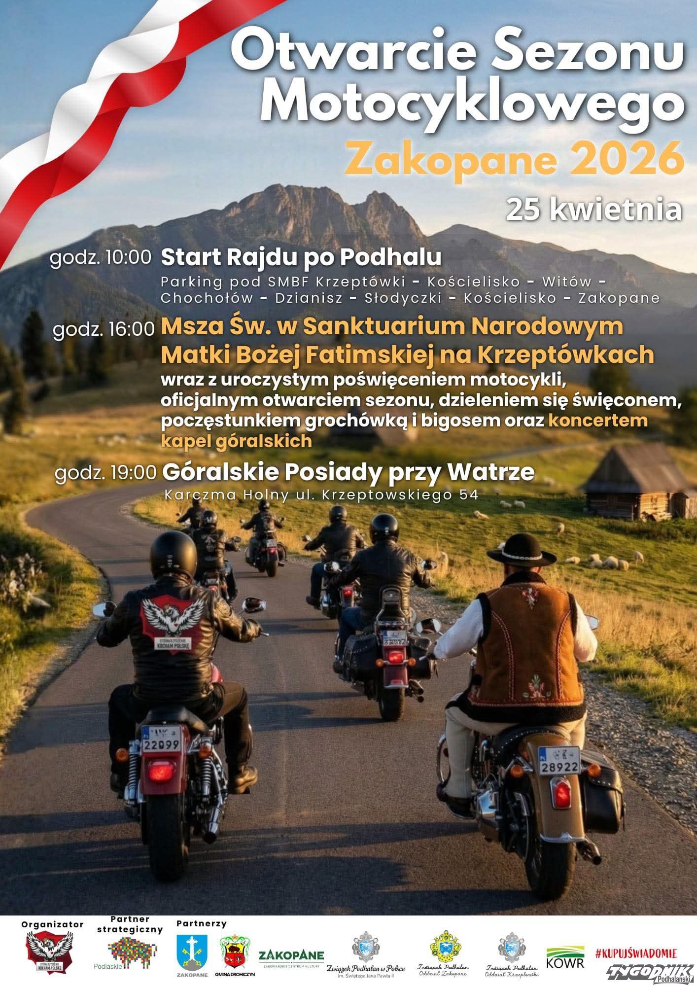 Już 25 kwietnia 2026 roku Zakopane stanie się miejscem oficjalnego otwarcia sezonu motocyklowego. Wydarzenie połączy wspólny przejazd malowniczymi trasami Podhala z elementami historycznymi, duchowymi i integracyjnymi.