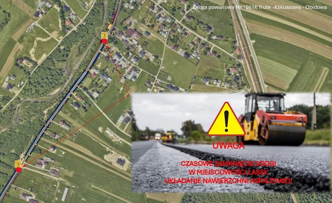 Powiatowy Zarząd Dróg poinformował o planowanym zamknięciu odcinka drogi powiatowej w miejscowości Lasek.