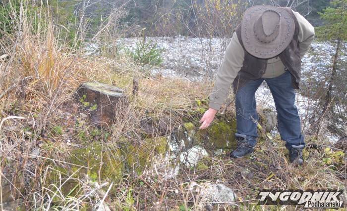 Do dziś w Jurgowie zachował się fragment jazu, który powstał w latach 50. ub. wieku. Można go odnaleźć powyżej mostu brzegowskiego. Kamienie zabezpieczone siatką spowalniały pęd rzeki.Fot. Monika Para