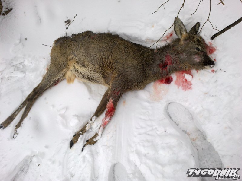 - W związku z przedłużającą się zimą zwierzyna jest bardzo osłabiona - podkreśla w odezwie do mieszkańców nadleśniczy Roman Latoń. - Dotyczy to szczególnie saren (kóz), które są obecnie w zaawansowanej ciąży. Trudne warunki powodują, że zwierzyna w poszukiwaniu pożywienia podchodzi blisko zabudowań i często pada łupem wałęsających się psów. Duże zagrożenie stanowią luzem puszczone małe pieski, które kłusując w grupie potrafią zagonić, zamęczyć i w konsekwencji zagryźć wyczerpaną zwierzynę. W ostatnim czasie na terenie Nadleśnictwa Nowy Targ, stwierdzono kilkadziesiąt saren zagryzionych przez psy.