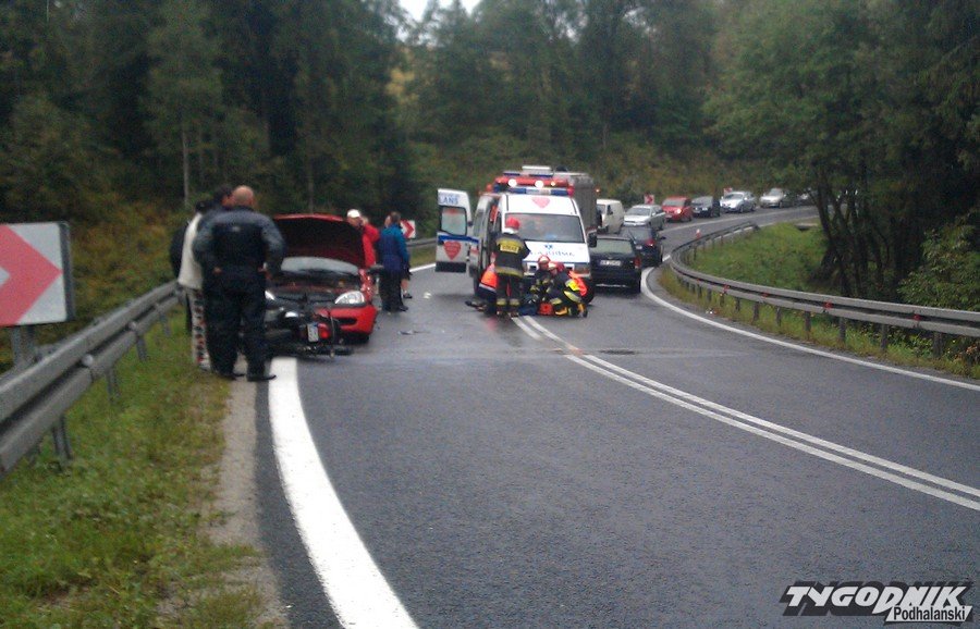 Na zakopiance zderzył się opel z motocyklem. Szosa jest zablokowana.
