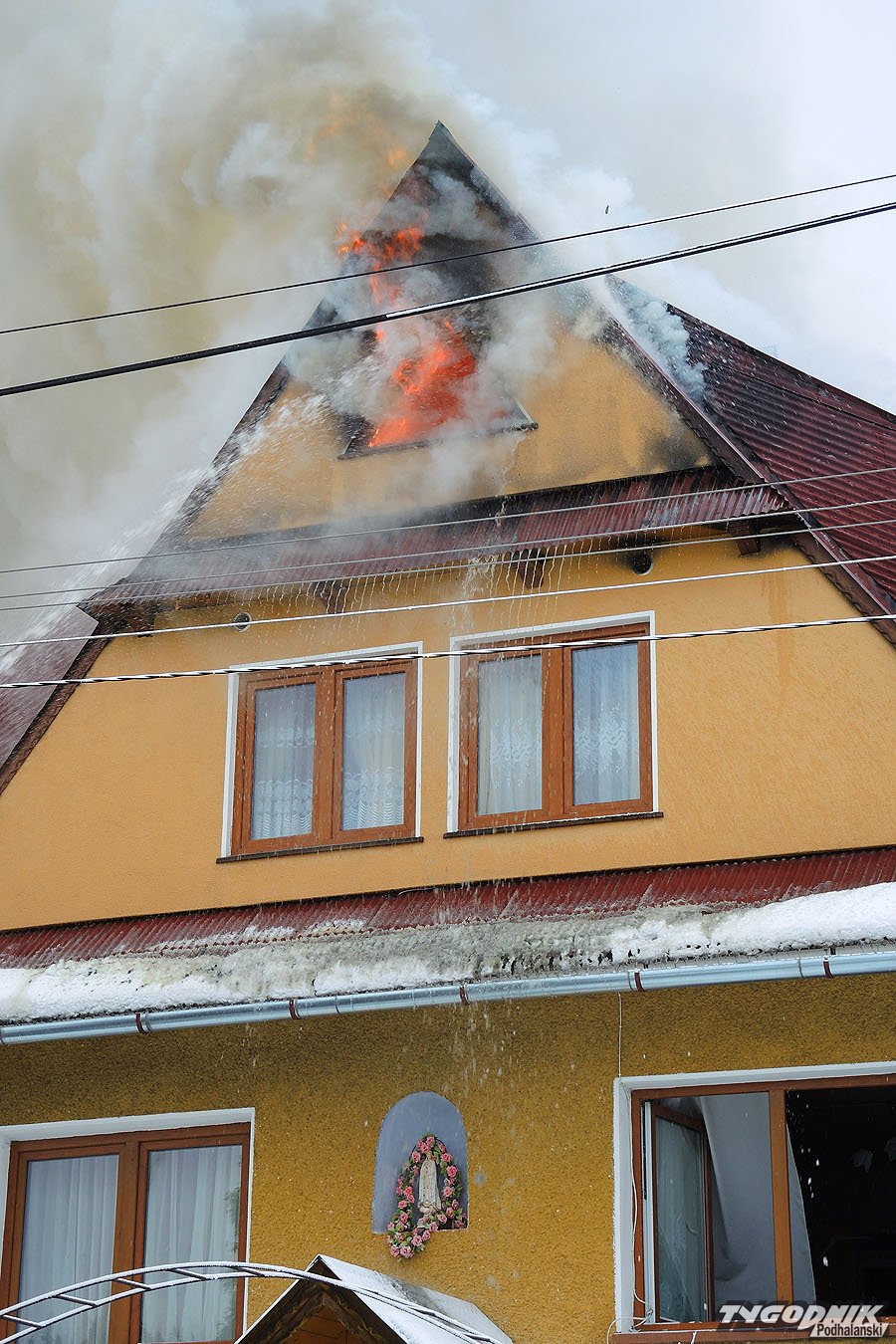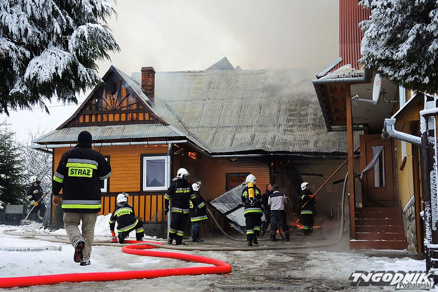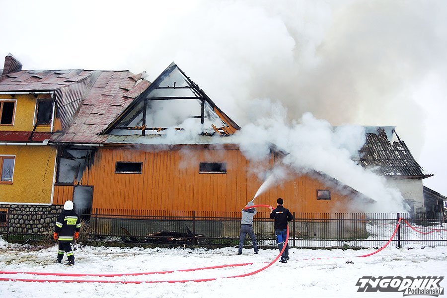 W akcji gaśniczej wzięło udział kilkanaście strażackich jednostek z Nowego Targu i okolicznych OSP. Akcja na miejscu wciąż trwa. Strażacy dogaszają zgliszcza.