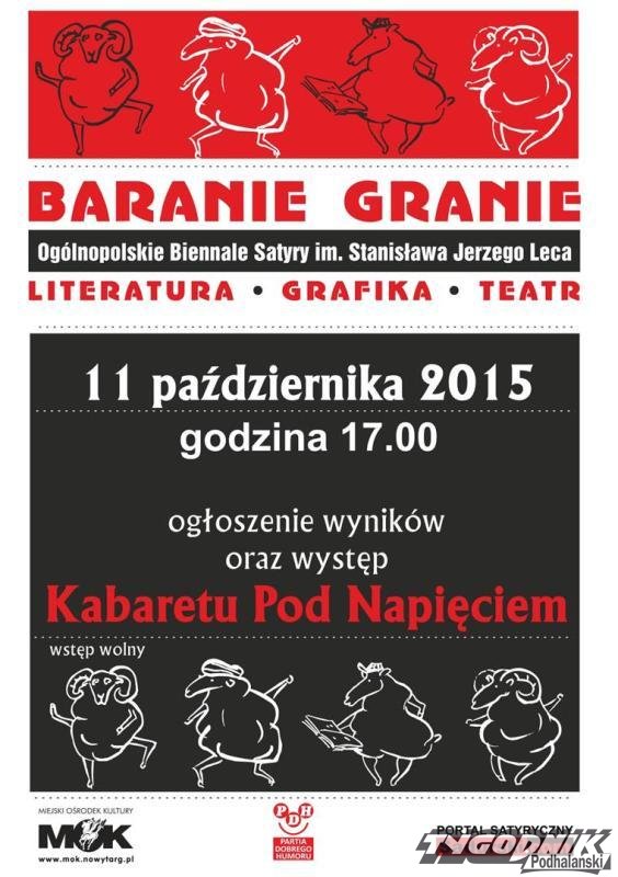 Nowotarski Miejski Ośrodek Kultury zaprasza w niedzielę, 11 października, na ogłoszenie wyników „Baraniego Grania”, czyli dorocznego ogólnopolskiego biennale satyry im. St. Jerzego Leca.