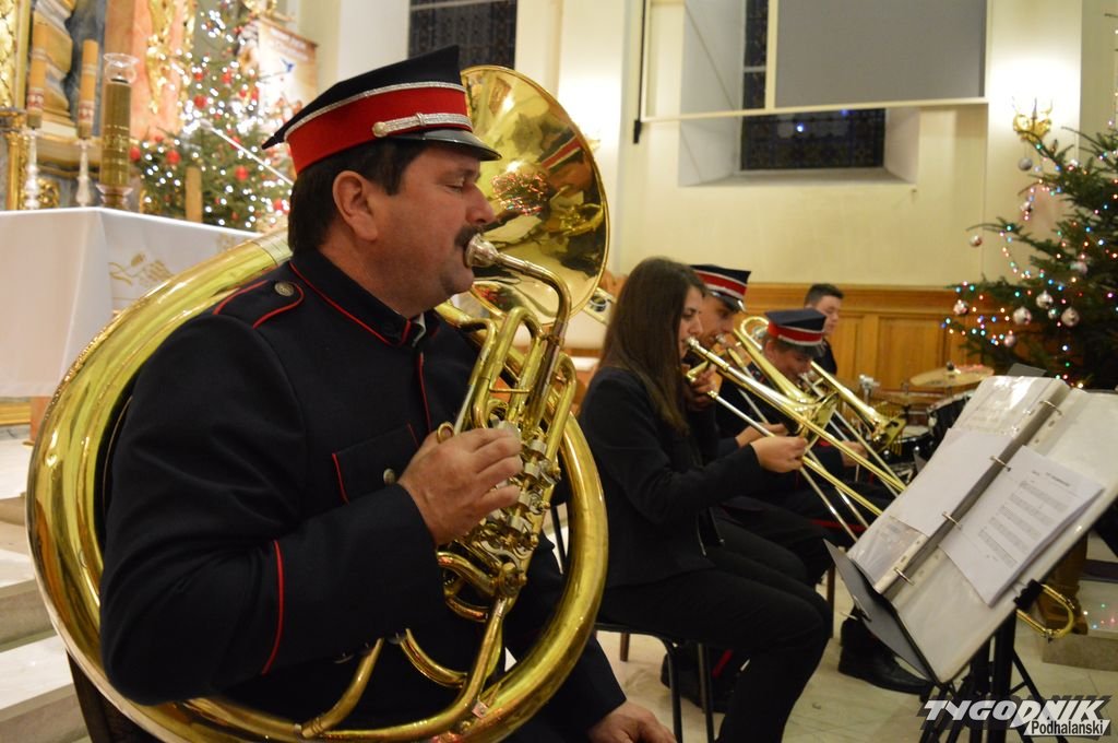 Koncert Miejskiej Orkiestry Dętej rozpoczął obchody jubileuszu 135-lecia OSP na Kowańcu. Stąd Marcin Musiak podarował zarządowi świąteczne upominki, a do życzeń świąteczno - noworocznych dołączył Józef Różański, dawny prezes OSP Kowaniec. Obecnie straży szefuje Bogusław Giełczyński.