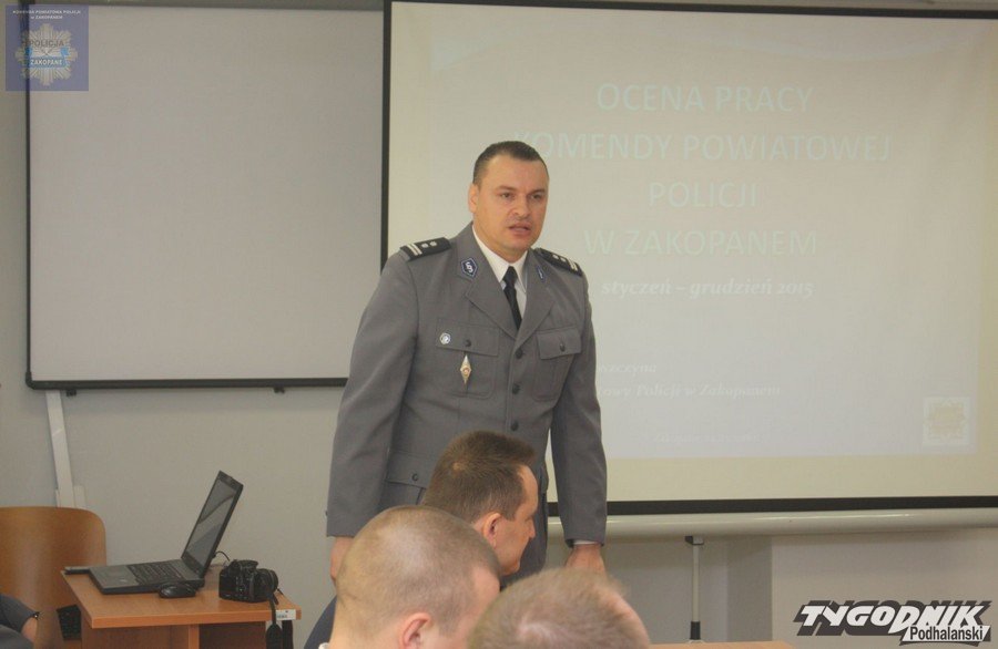 Podczas spotkania prowadzonego przez Komendanta Powiatowego Policji w Zakopanem mł. inspektora Macieja Woszczynę rozmawiano na temat sukcesów, jak i trudności, które hamują sprawne funkcjonowanie zakopiańskich stróżów prawa. Komendant Maciej Woszczyna omówił sprawy kadrowe, dyscypliny służbowej, scharakteryzował współpracę z samorządami oraz podsumował środki przekazane tatrzańskim policjantom. W 2015 roku była to kwota164.702 złotych. Pieniądze przeznaczone zostały m. in. na zakup nowych radiowozów, zakup sztandaru dla naszej jednostki.