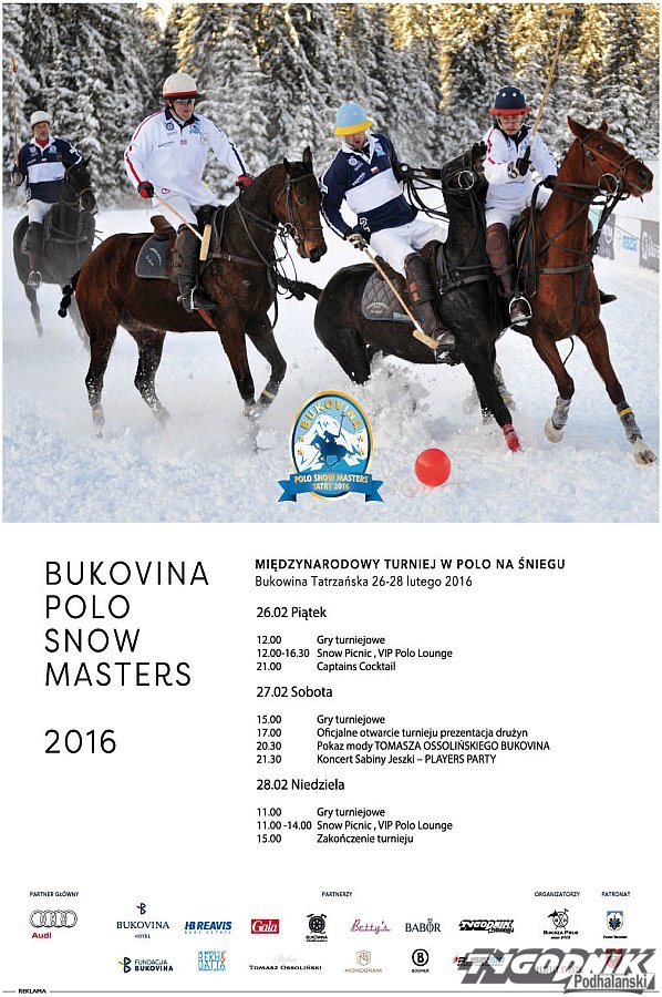 Już w najbliższy weekend, od piątku do niedzieli 26-28 lutego, w Bukowinie Tatrzańskiej odbędzie się kolejna edycja międzynarodowego turnieju gry w polo na śniegu - Bukovina Polo Snow Masters.