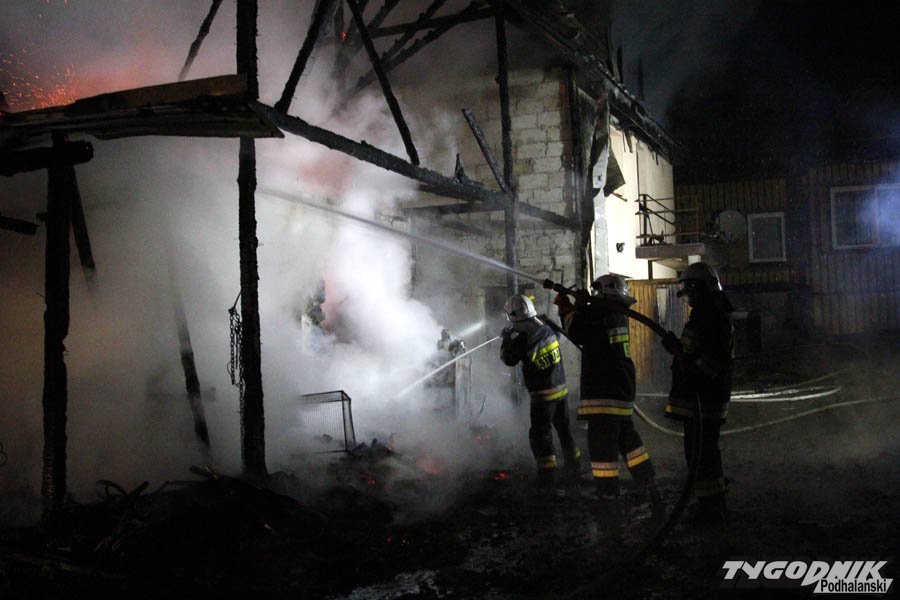 Spłonęła stodoła, strażacy próbują ratować dom.