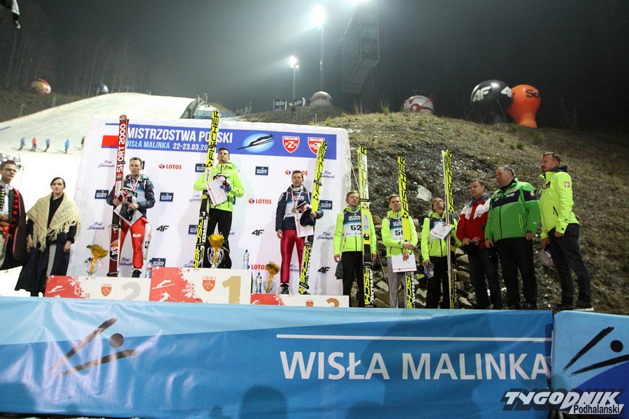 Maciej Kot (AZS Zakopane) po dwóch równych i dalekich skokach na odległość 131 i 132 metrów zwyciężył w indywidualnych zawodach Mistrzostw Polski w skokach narciarskich w Wiśle, minimalnie wyprzedzając Stefana Hulę (KS Evenement Zakopane).