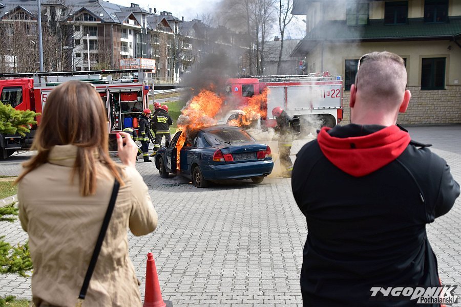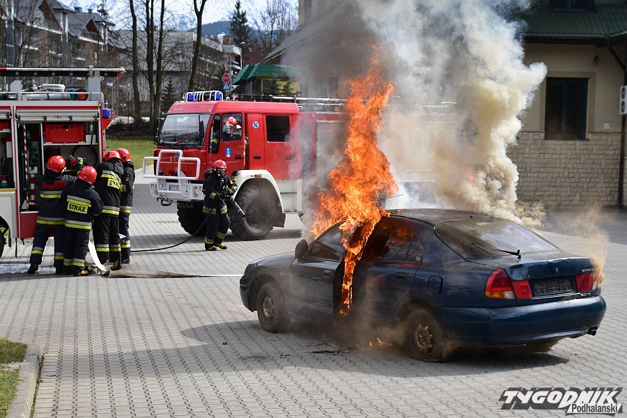 Wystarczyło trochę benzyny i zapalona zapałka - mitsubishi carisma błyskawicznie stanął w płomieniach. Oczywiście pod nadzorem zakopiańskich strażaków zawodowych, którzy nad wszystkim czuwali. Pożar samochodu był elementem ćwiczeń i nauki.