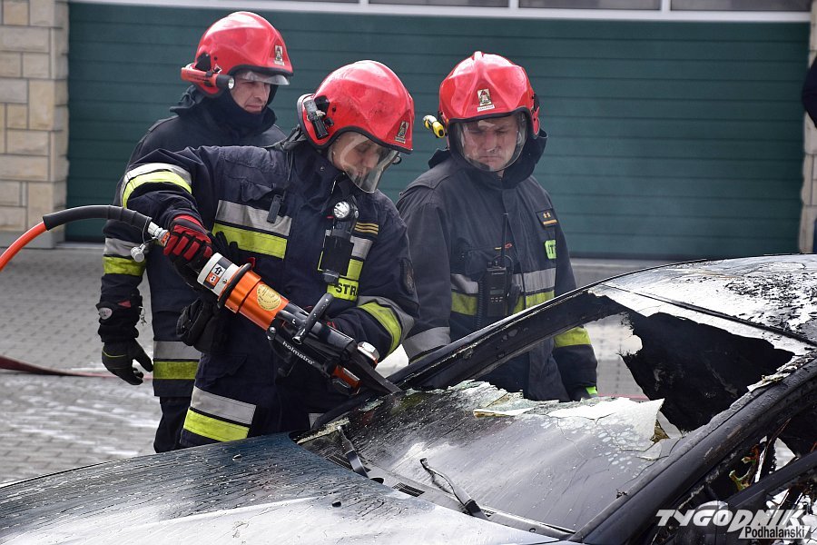Przy zakopiańskiej jednostce straży pożarnej spłonęło auto osobowe.