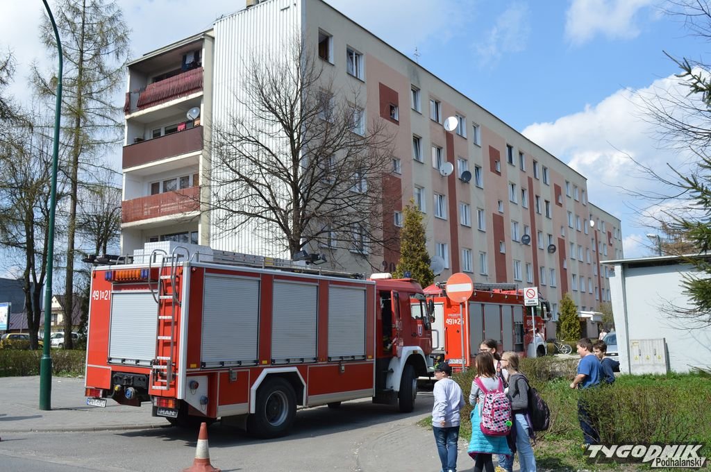 Płonące poduszki w Nowym Targu. Akcję strażaków obserwowali mieszkańcy bloku