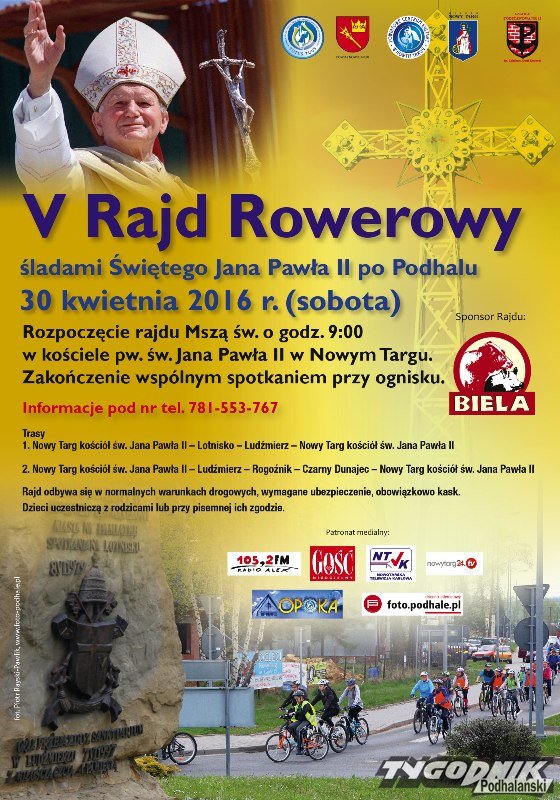 Parafia pw. św. Jana Pawła II zaprasza do udziału w V Rajdzie Rowerowym śladami św. Jana Pawła II po Podhalu.