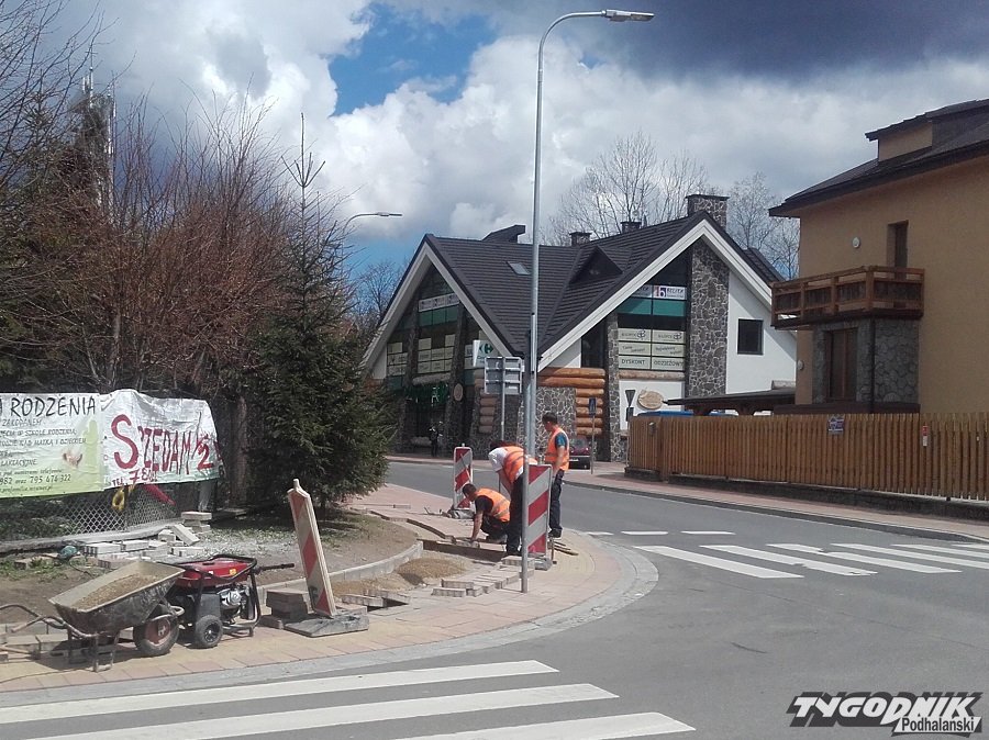 Ekipy remontują położony niedawno chodnik przy ul. Sabały w Zakopanem.