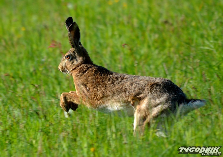 Na razie wiosnę mamy wyjątkowo chłodną, ale na łąkach każdą słoneczną chwilę wykorzystują zające.