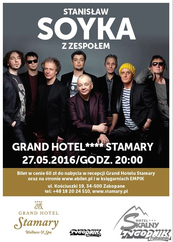 W piątek 27 maja w Grand Hotelu Stamary w Zakopanem wystąpi Stanisław Soyka z zespołem. Zaproszenia można wygrać biorąc udział w konkursie - szczegóły w czwartek w papierowym wydaniu TP.