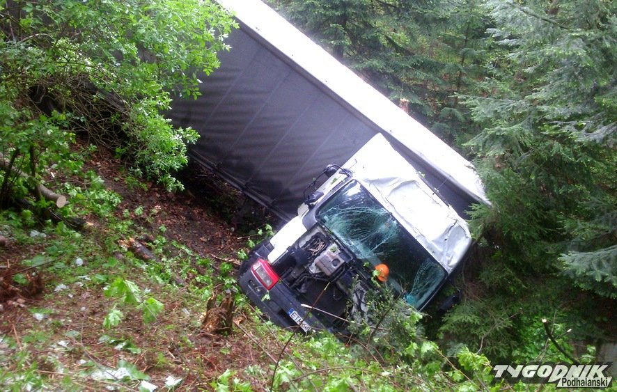 Wielka ciężarówka zsunęła się z urwiska