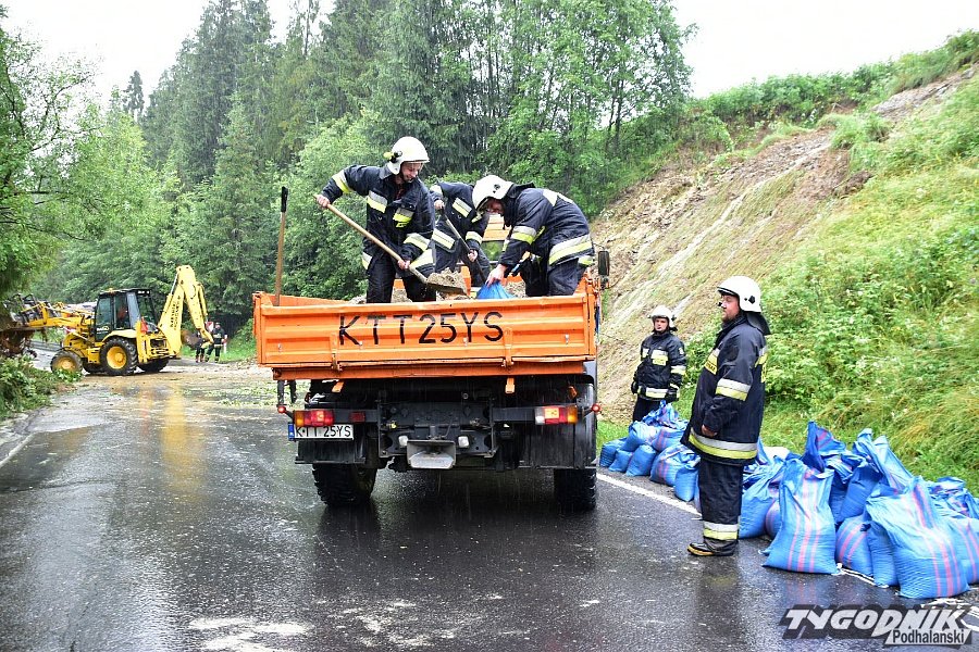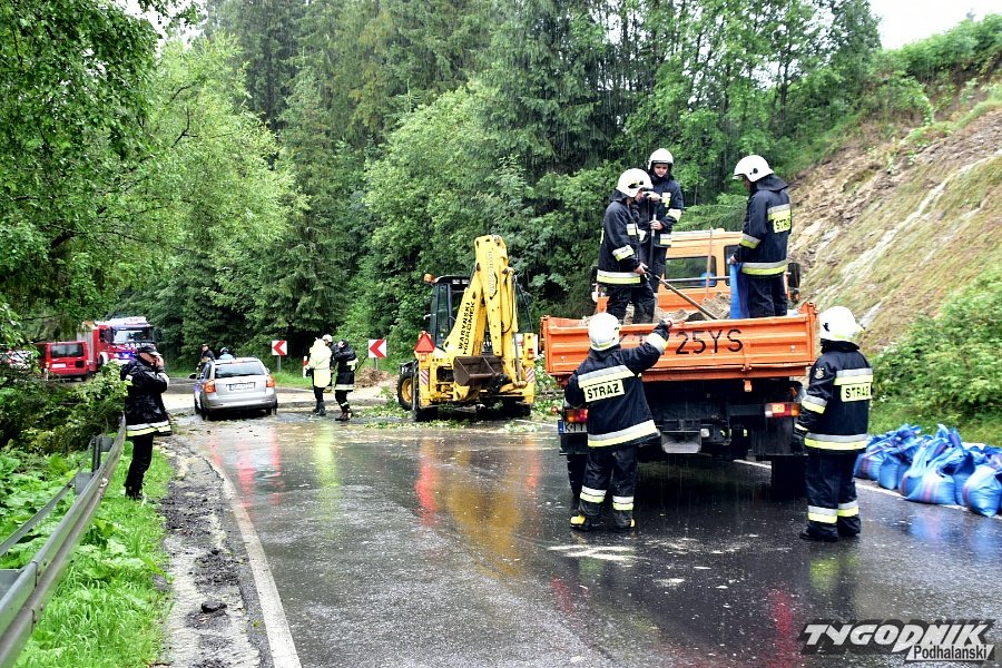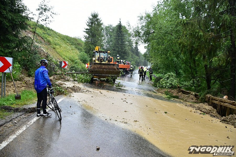 Ulewny deszcz sprawił, że woda z brzegów wystąpił mały potok wpływający do Białki. Skarpa zatarasowała trasę, po której jechać mają kolarze.