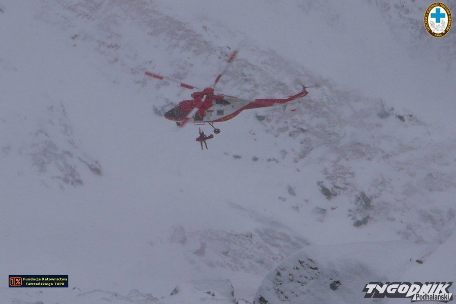 Turysta, który spadł z lawiną ma otwarte złamanie uda.