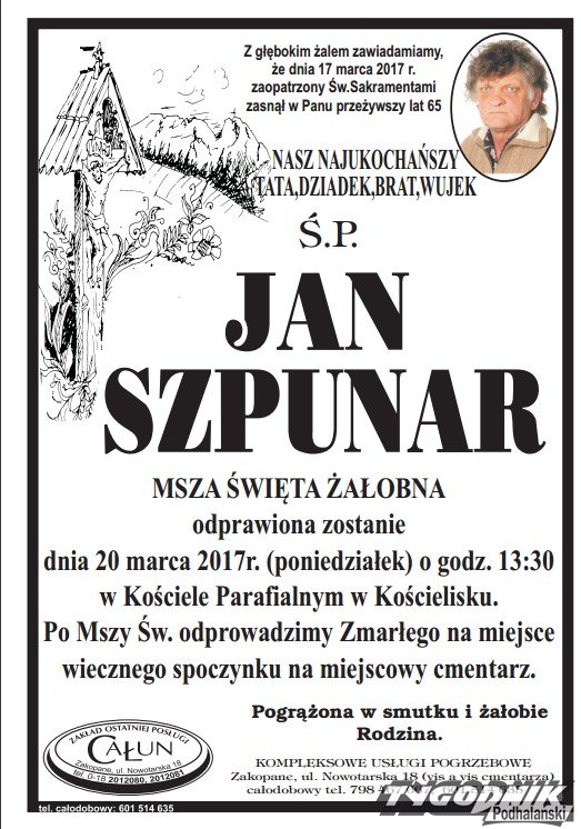 W Kościelisku pożegnamy dziś Jana Szpunara, olimpijczyka z Insbrucku, członka sztafety biathlonowej, która w Atholz na Mistrzostwach Świata w biathlonie zdobyła brązowy medal.